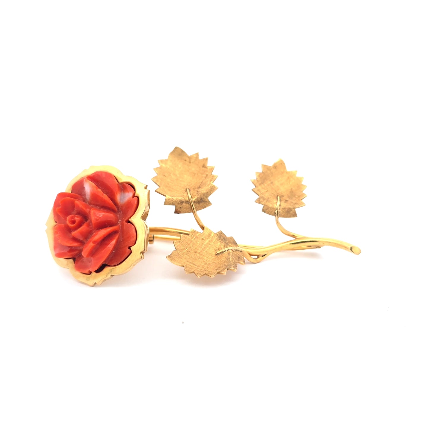 Voeg Vintage Yellow Gold Brooch with Carved Coral Rose toe aan de winkelwagen