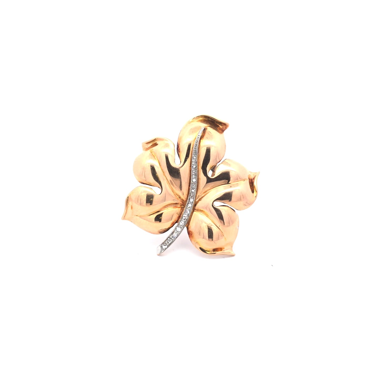 Voeg 18k Rose Gold Leaf Brooch with Rose Cut Diamonds toe aan de winkelwagen
