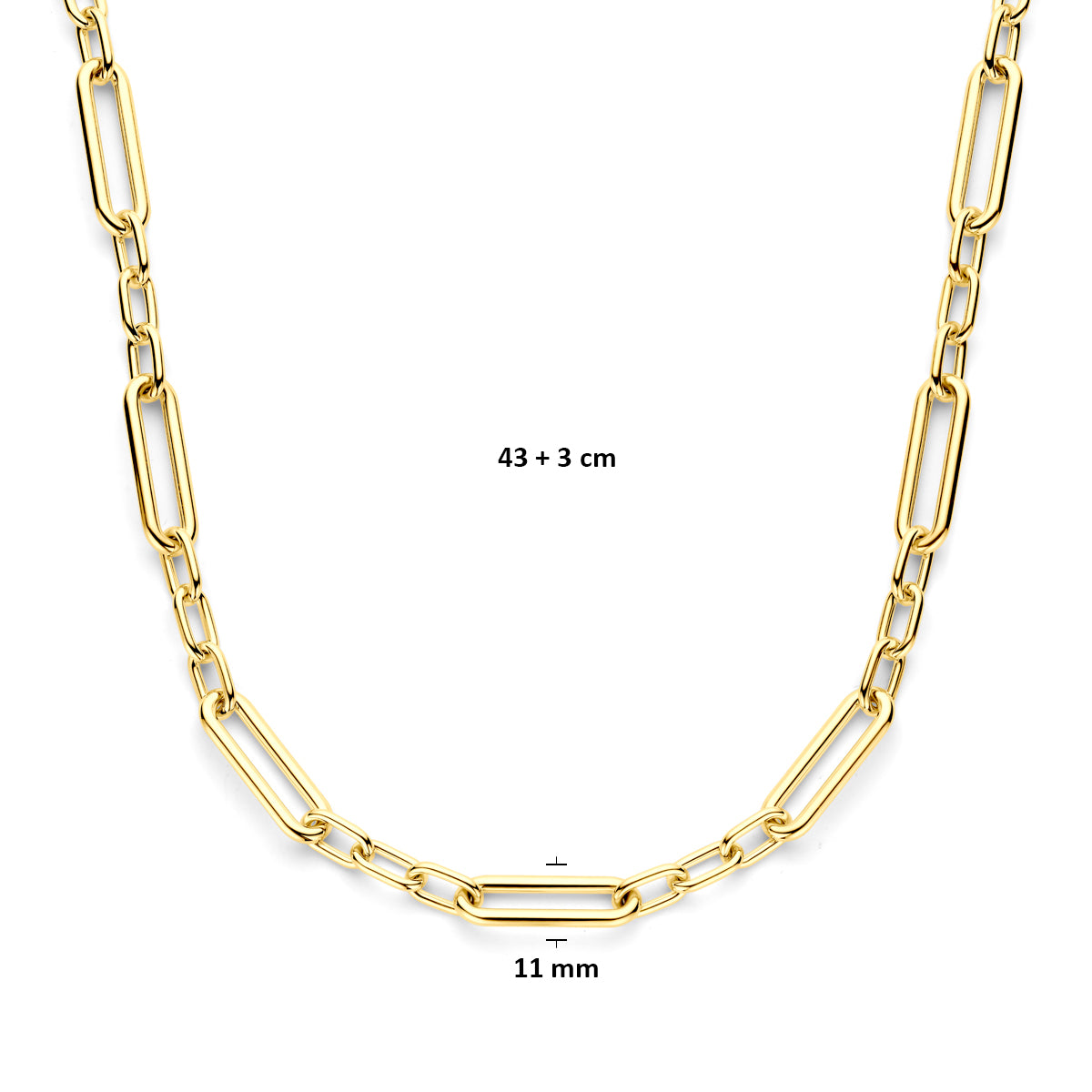 Effortlessly chic and undeniably bold, this 14k yellow gold paperclip necklace chains together timeless elegance with modern edge. At 42 cm, it sits perfectly for layering or wearing solo, while the substantial 32.8-gram weight delivers that satisfying luxury feel. A conversation starter that proves fine jewelry doesn't always have to be serious—sometimes the best designs are the ones that make you smile.