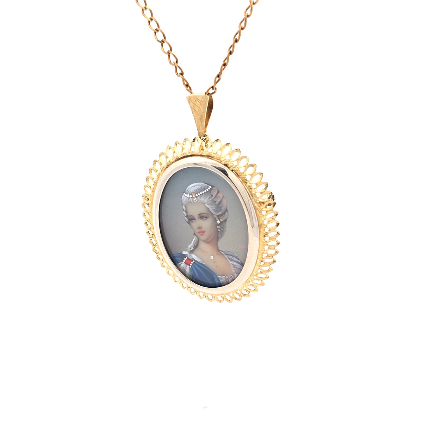 Voeg Yellow Gold Portrait Limoges Locket Pendant Necklace toe aan de winkelwagen