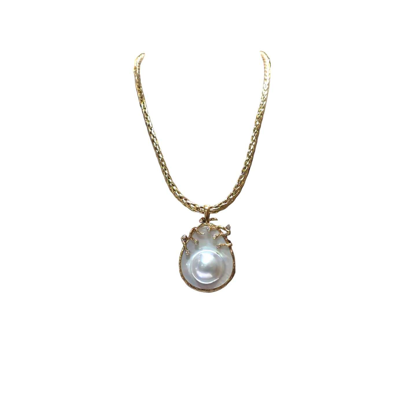 Voeg 14k Yellow Gold Pendant with Mabe Pearl and diamonds toe aan de winkelwagen