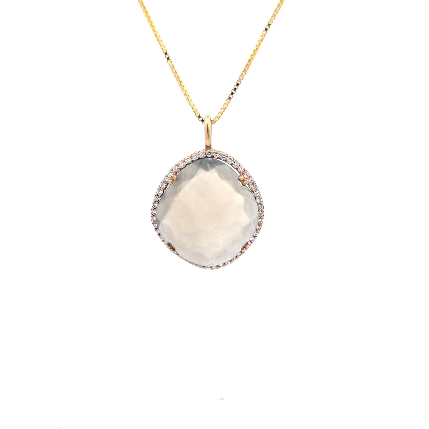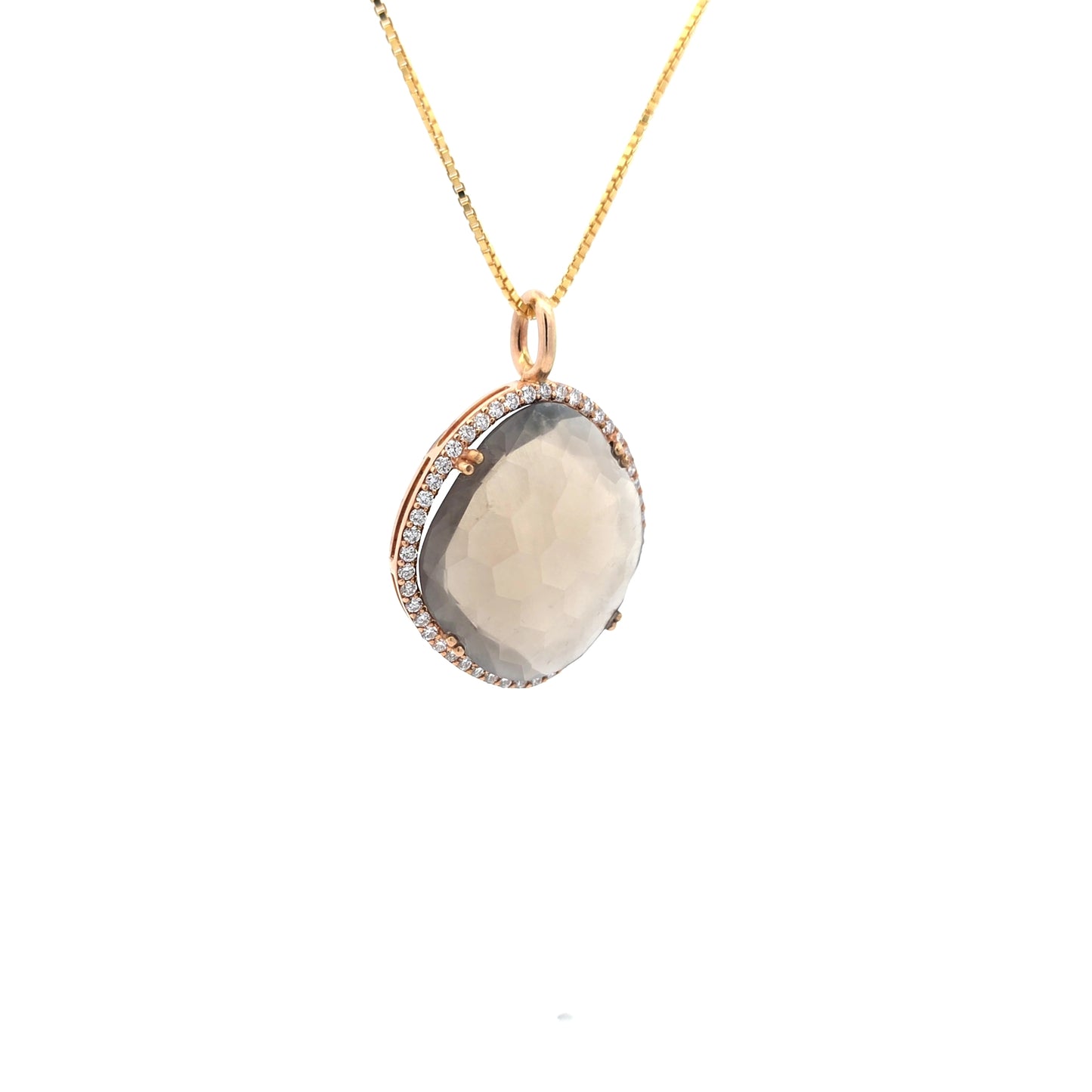 Voeg 14k Yellow Rose Gold Charm Necklace with Smokey Quartz and Brilliant Cut Diamonds toe aan de winkelwagen