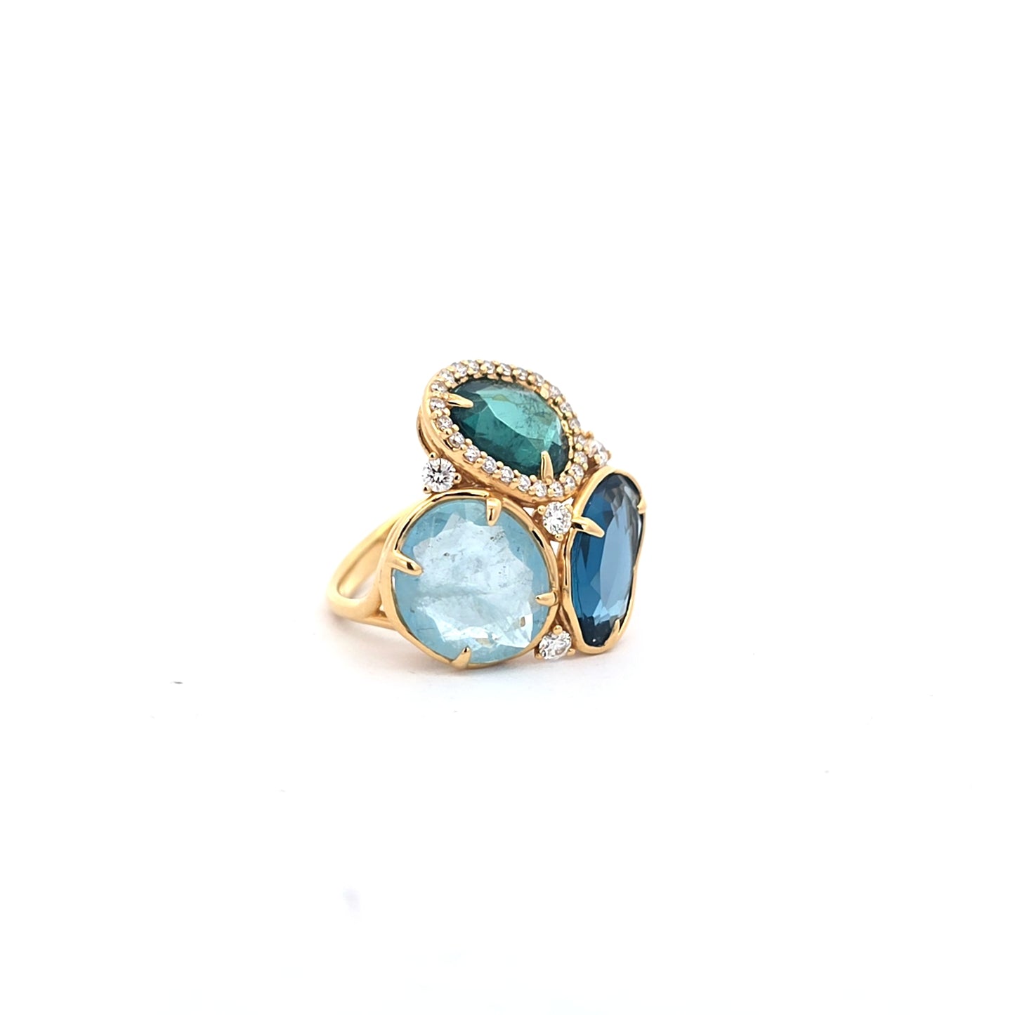 Voeg Peroni & Parise Tri-Color Gemstone Cocktail Ring in 18K Yellow Gold toe aan de winkelwagen
