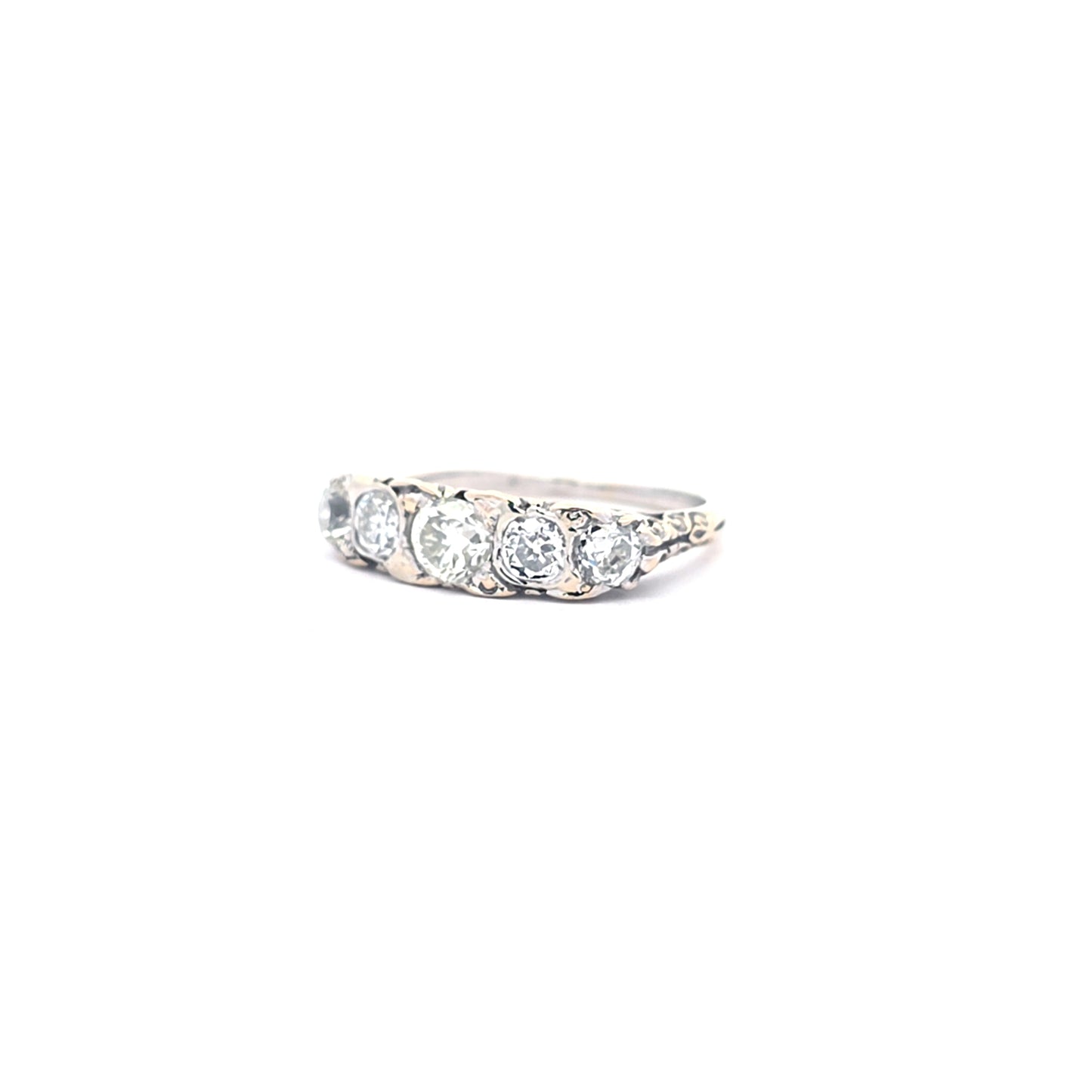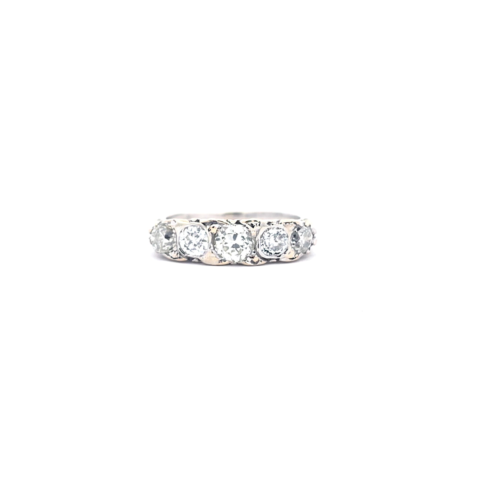 The ring features a total of 5 Bolshevik-cut diamonds, with the center stone being a beautiful 0.50ct diamond. On either side of this stone are two diamonds of 0.25ct each. Finally, there are 2 more 0.20ct diamonds.