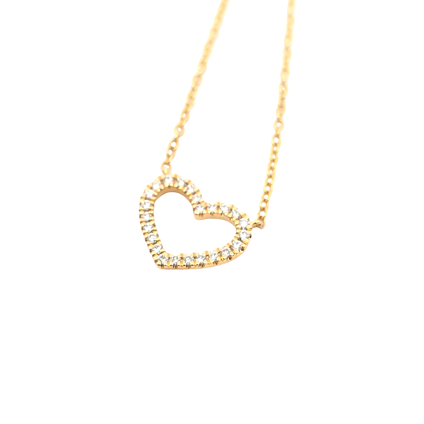 Elegant and timeless necklace crafted from 14 carat yellow gold, featuring a refined heart-shaped pendant set with brilliant-cut diamonds.
