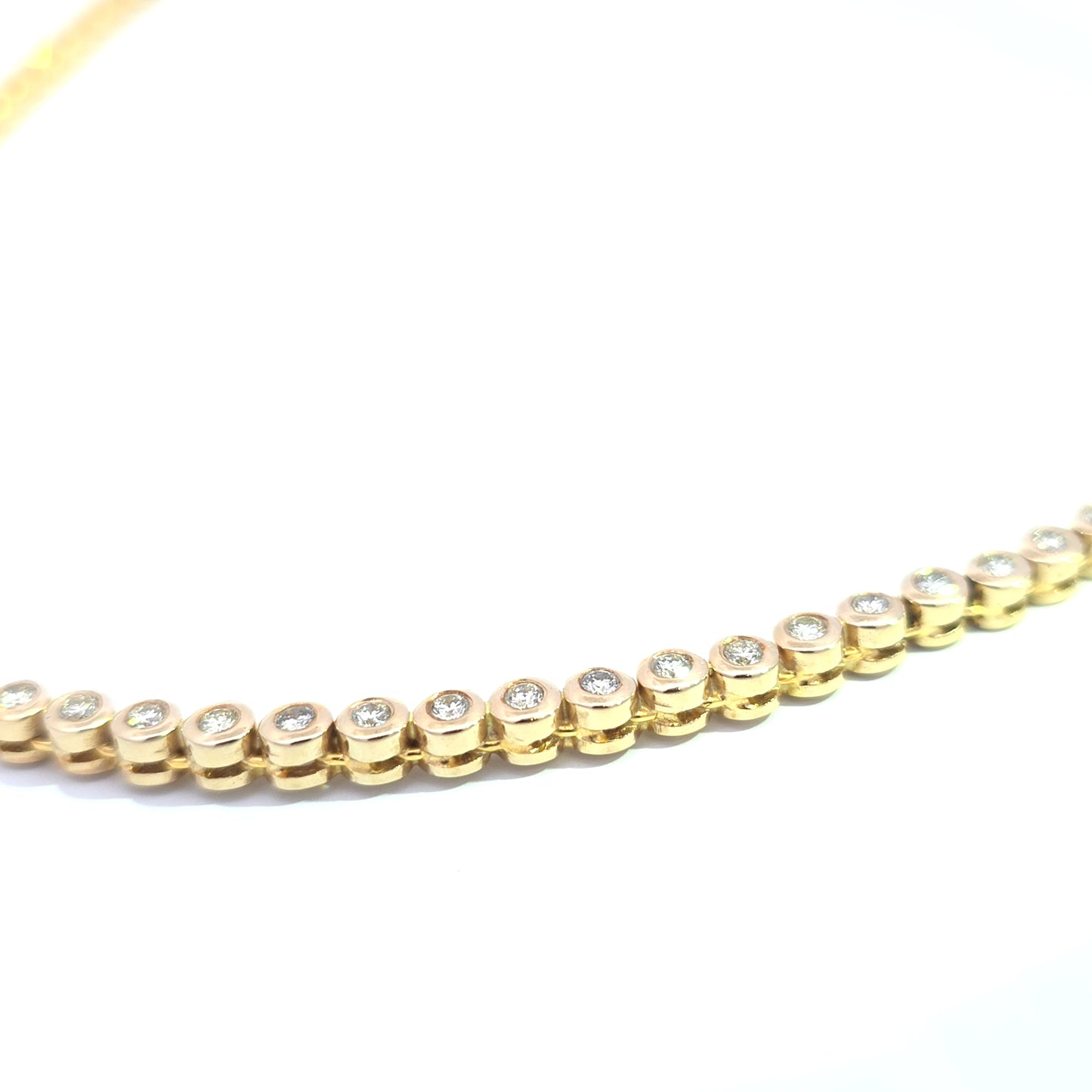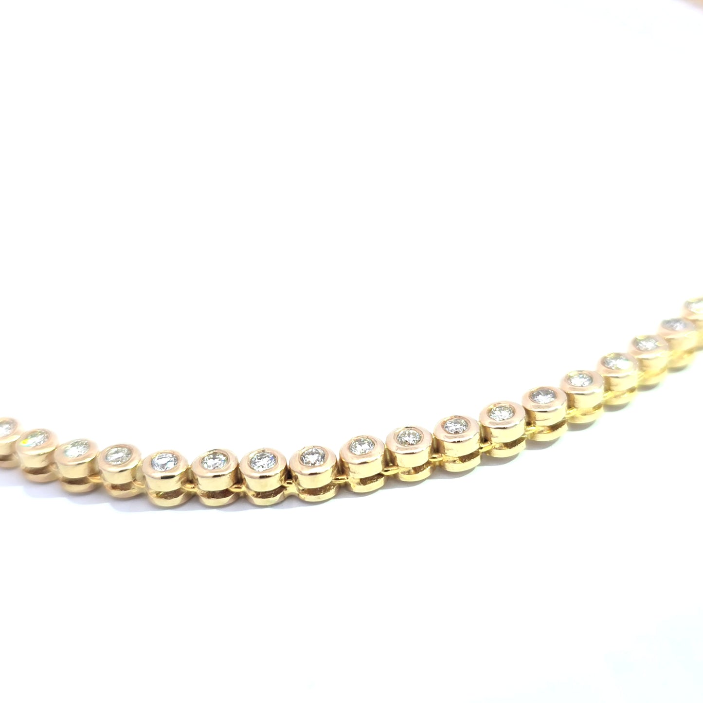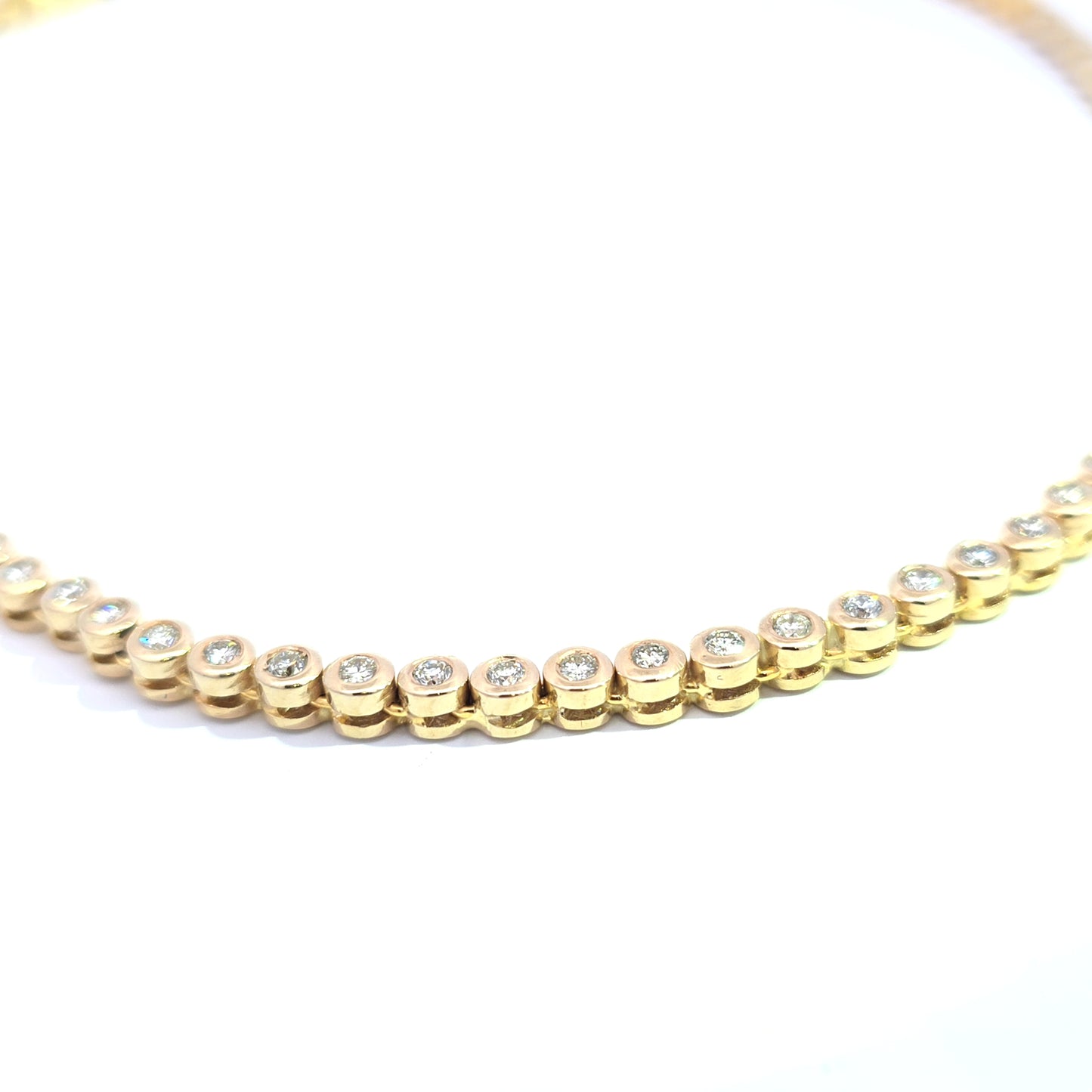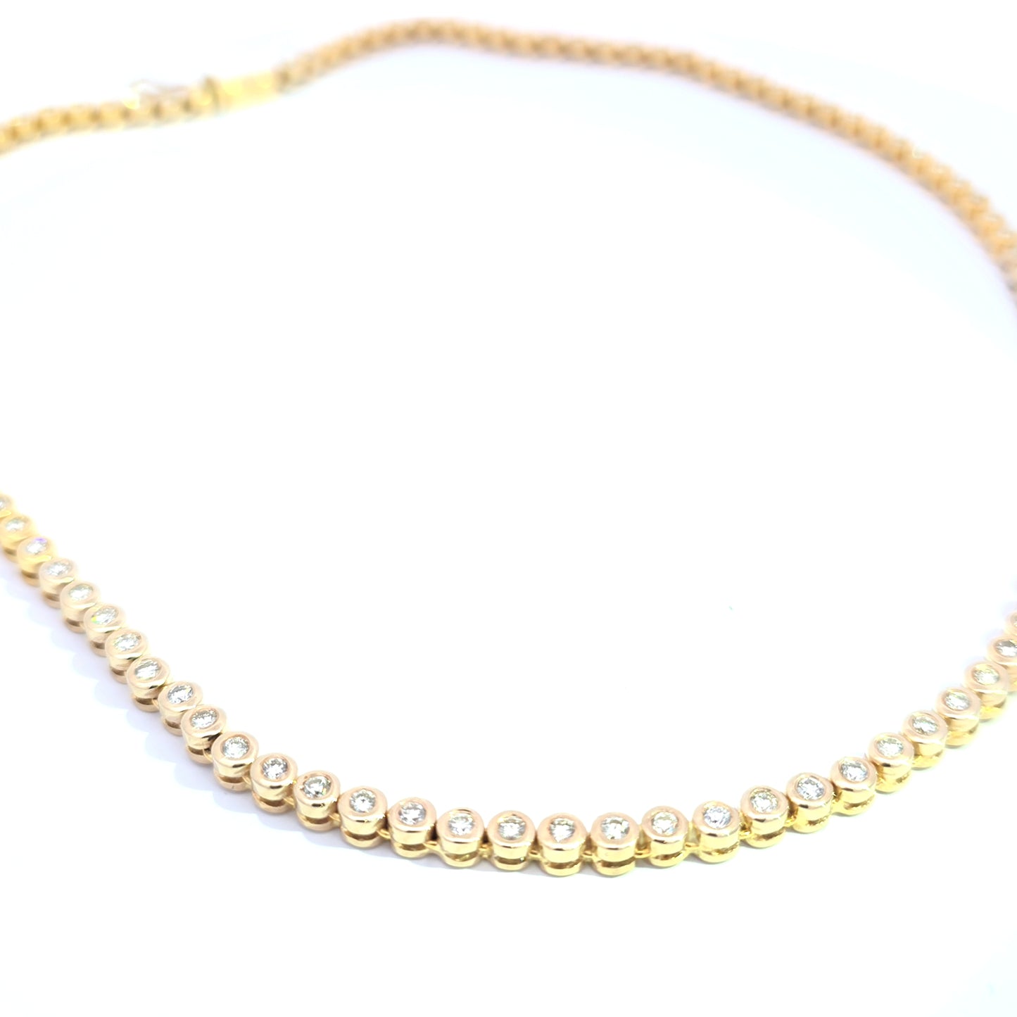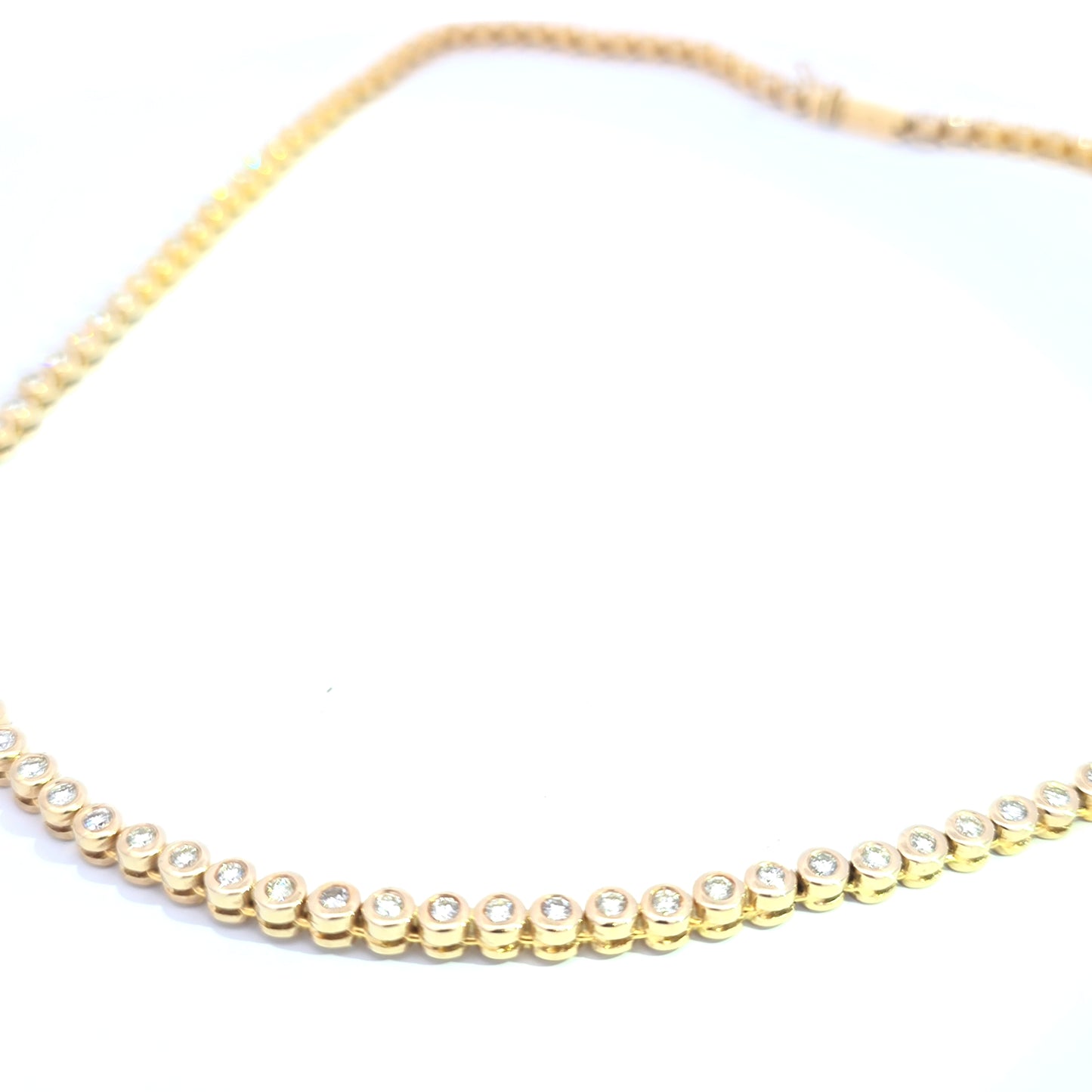 Elevate your style with this exquisite diamond necklace, meticulously crafted in warm 18ct yellow gold. The timeless design showcases a series of 107 0,04ct brilliant-cut, round diamonds set closely together, creating a continuous line of radiance. This classic diamond necklace offers a touch of understated glamour for any occasion.