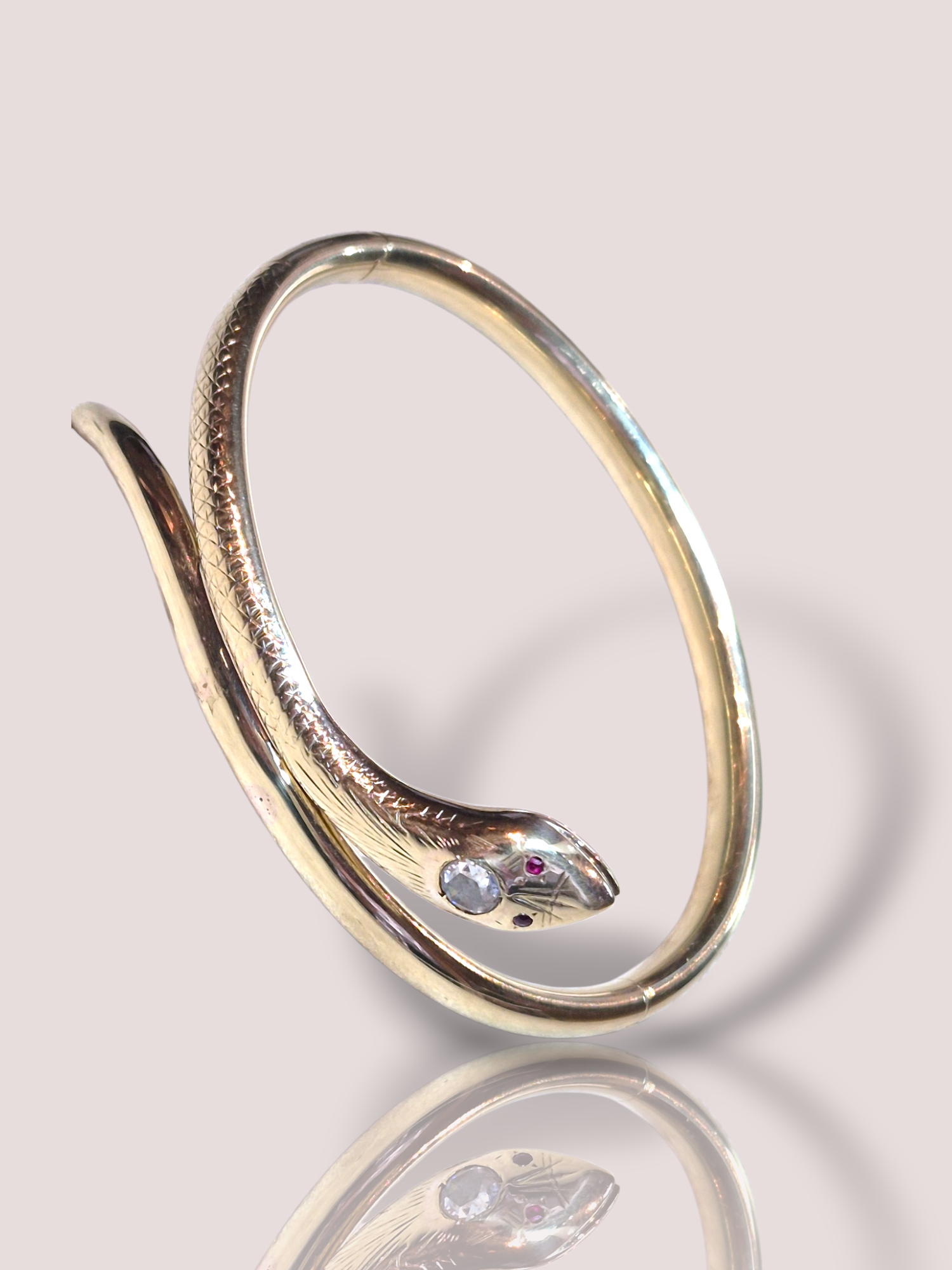 De Vintage 14k geel gouden slangenarmband is een schitterend sieraad dat elegantie en stijl uitstraalt. Met zijn opvallende slangendesign in geel goud, voegt het een vleugje luxe toe aan elke outfit. Combineer deze armband met andere fijne gouden sieraden voor een verfijnde en tijdloze look. Perfect voor zowel formele als informele gelegenheden.