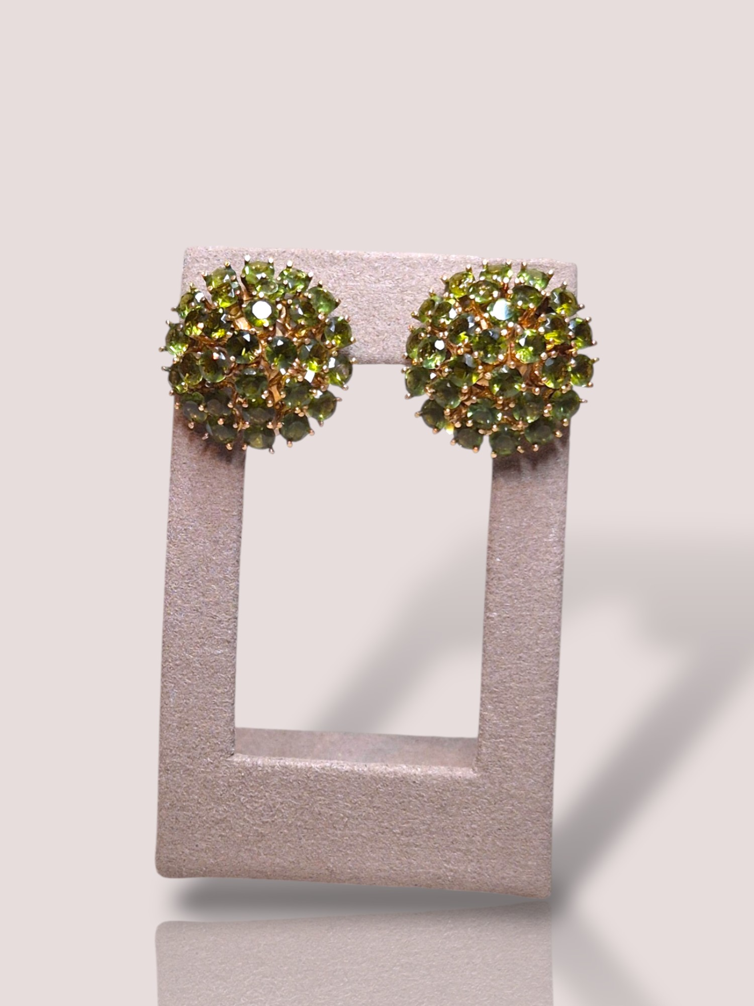 De Vintage 18k geel gouden cluster peridot oorclips zijn prachtige sieraden met een rijke uitstraling. Deze oorclips behoren tot de categorie juwelen en zijn specifiek oorclips met gekleurde stenen. Draag ze met opgestoken haar of een elegante outfit voor een verfijnde look die de peridot stenen benadrukt.