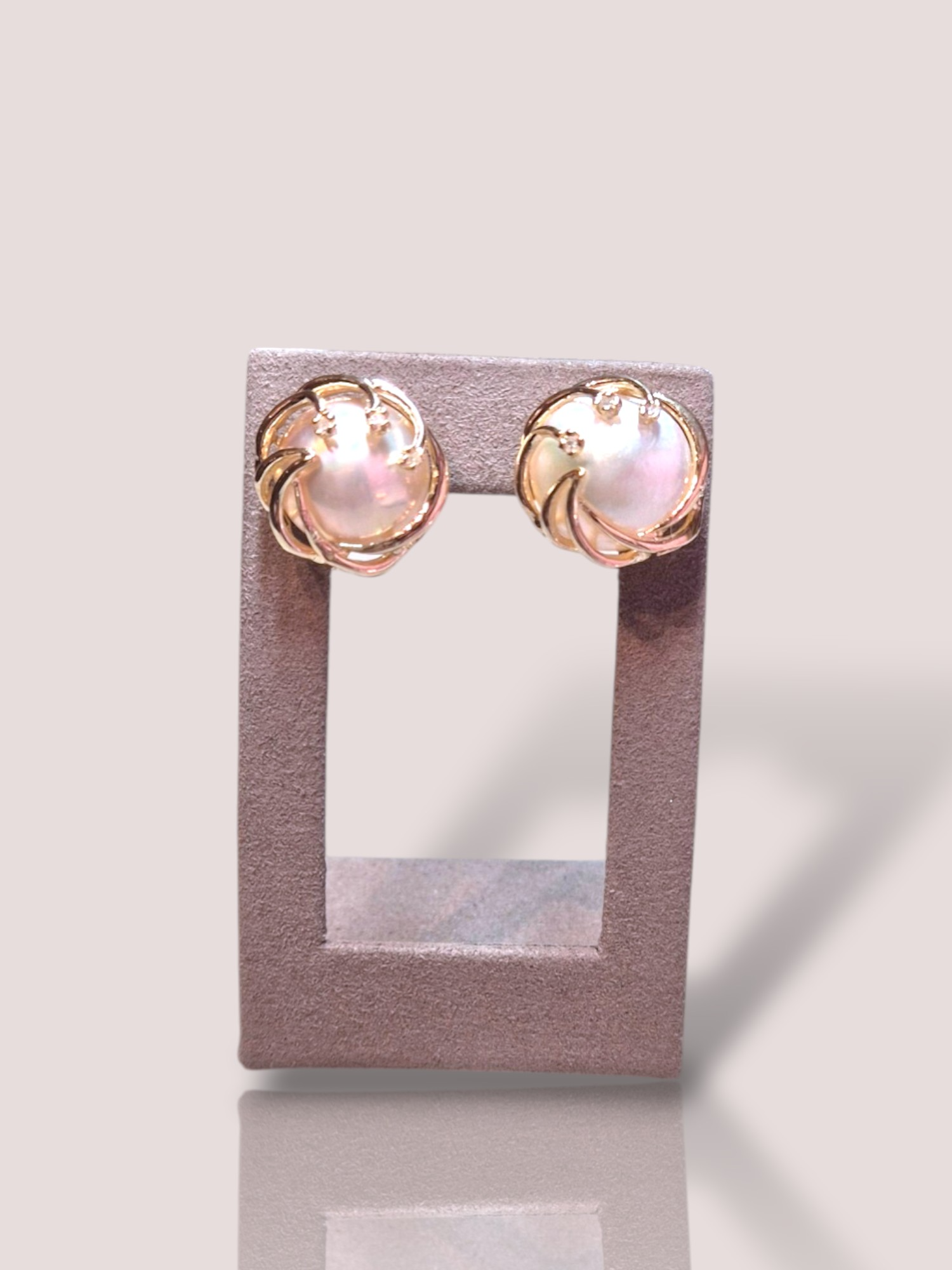 Deze Vintage 14k geel gouden oorstekers zijn stijlvolle accessoires die bestaan uit boutonparels en briljanten.