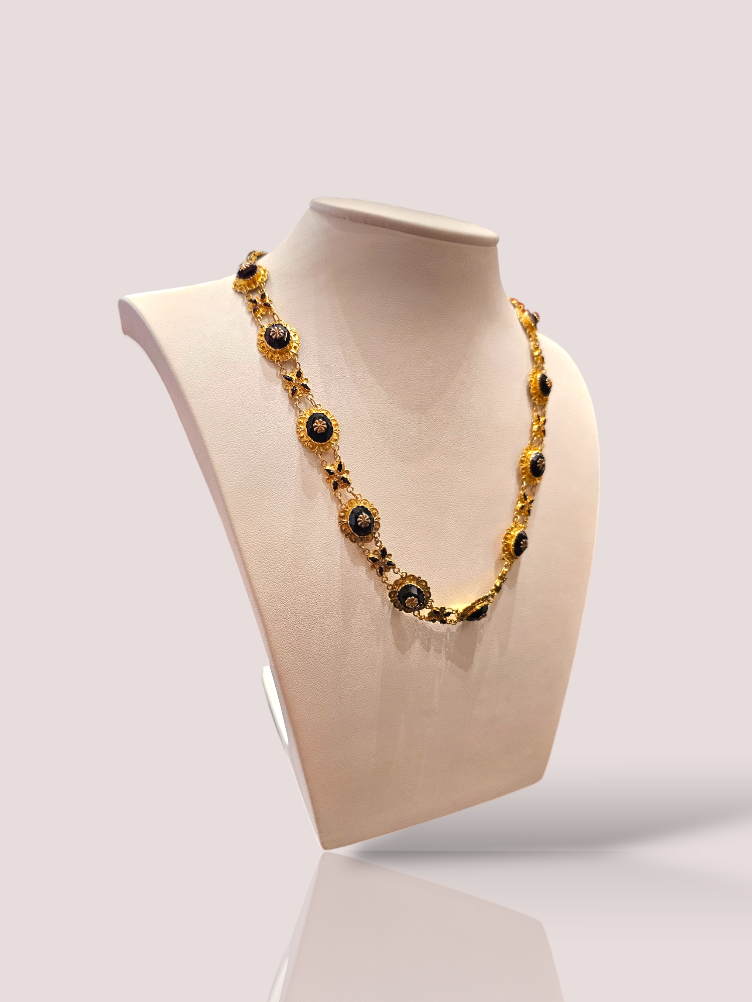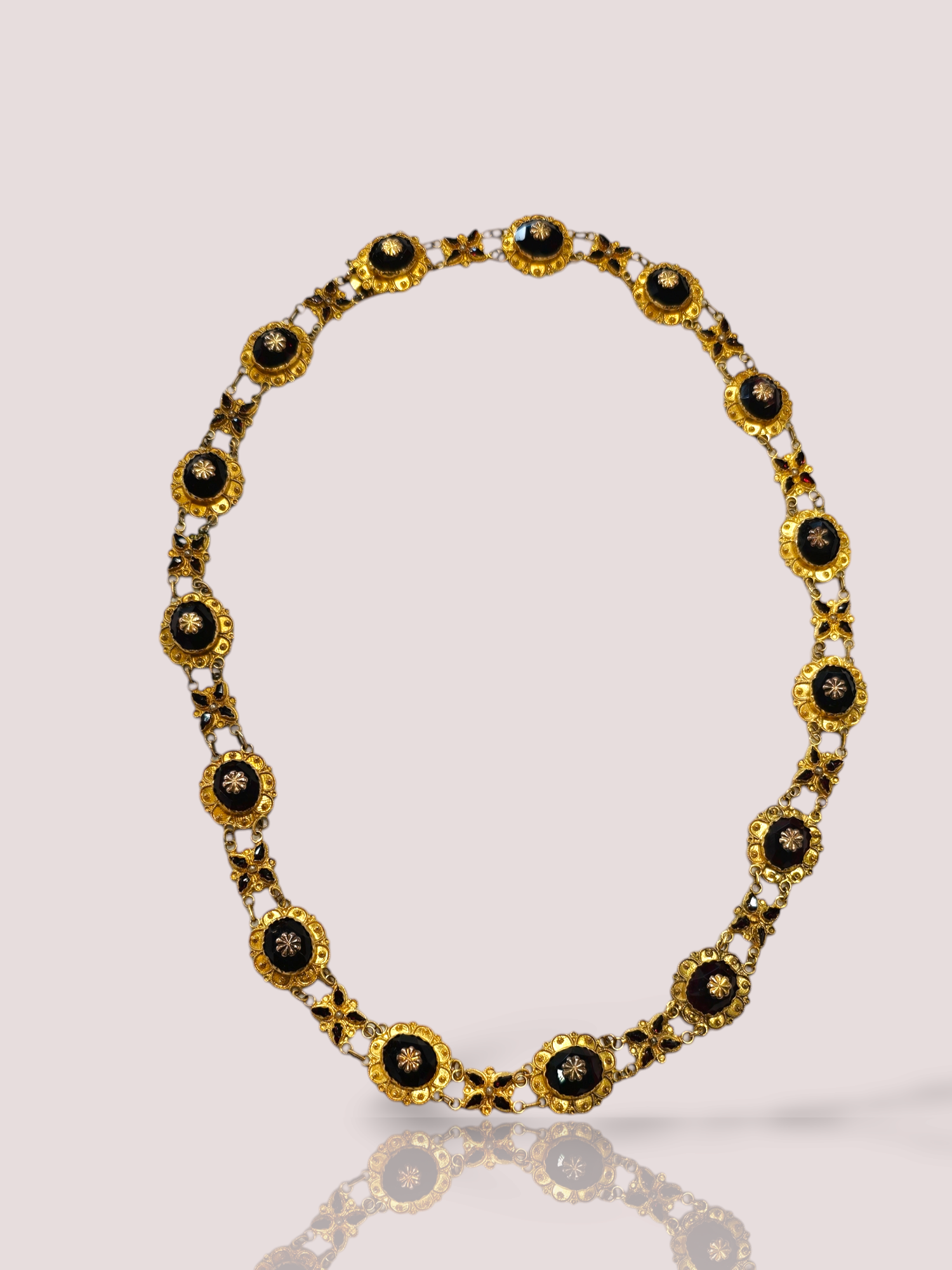 Dit prachtige antieke 14k geel gouden bootjes collier met granaat is een uniek sieraad dat direct opvalt. De bootjes colliers hebben een rijke historie en werden veelvuldig gedragen tussen eind 1800 en halverwege 1900. Het collier kan zowel casual als chique gedragen worden en voegt een vleugje elegantie toe aan elke outfit. Draag het om je hals om je look compleet te maken en bewonderende blikken te trekken. Een echte eyecatcher! Het collier is 44 cm lang en heeft 15 schakels met granaten.