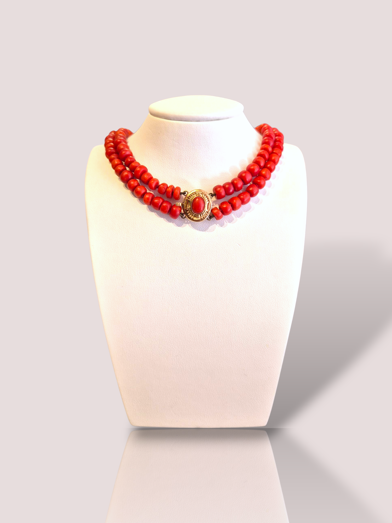Het Antiek donker oranje 2-rijig bloedkoralen collier met gouden slot is een opvallend juweel. Dit juweel heeft de Amsterdamse Andreaskruisen als keurmerk en is perfect voor speciale gelegenheden. Draag het rond de nek om je outfit een elegante en klassieke uitstraling te geven. Combineer met een eenvoudige outfit om de ketting echt te laten opvallen.