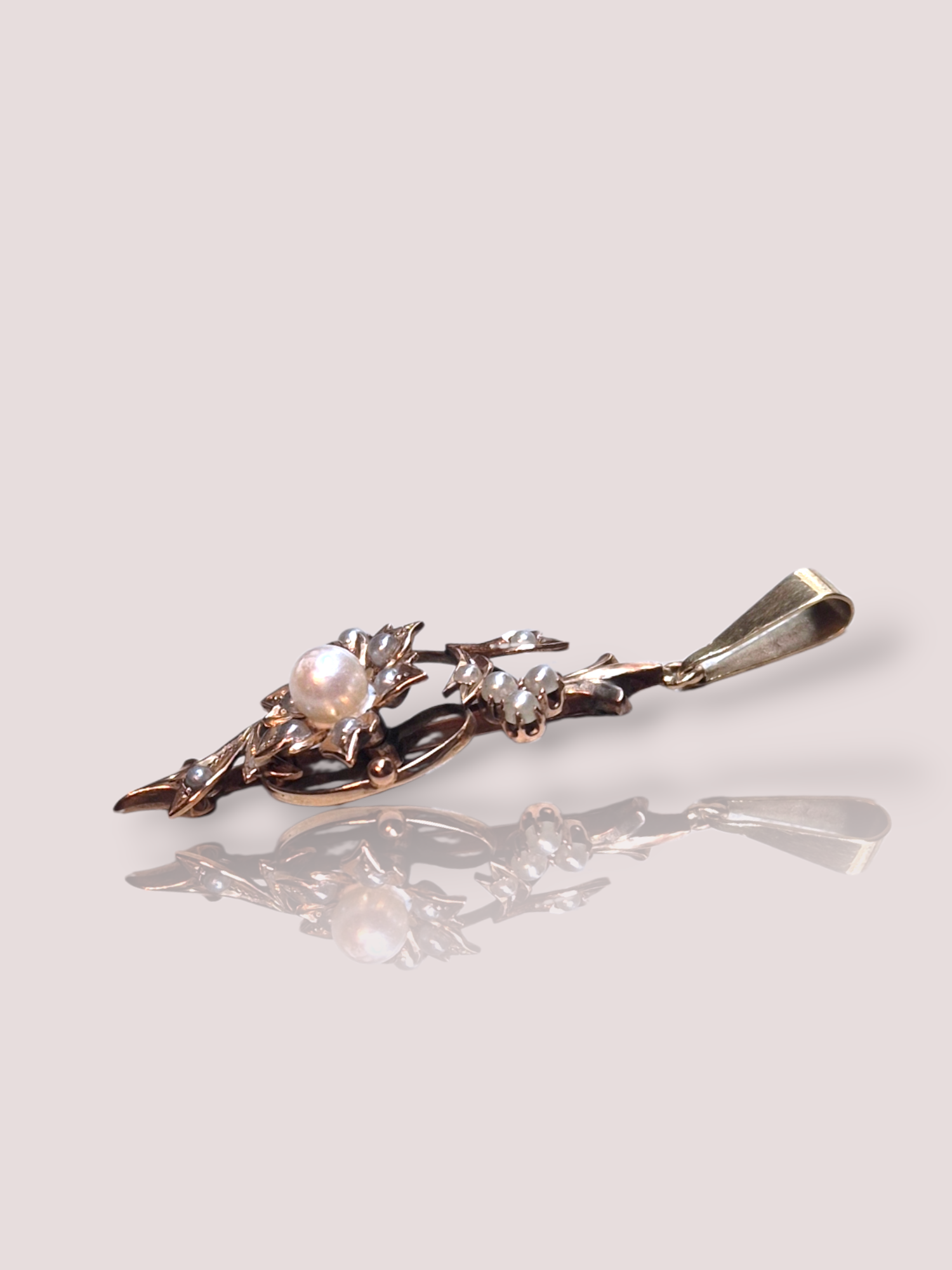 De Antieke 14k rosé gouden hanger met pareltjes is een prachtige toevoeging aan jouw sieradencollectie. Met zijn verfijnde ontwerp en elegante parels straalt deze hanger klassiek en tijdloze schoonheid uit. Draag hem aan een fijne ketting om je hals te verfraaien en een vleugje luxe aan elke outfit toe te voegen.