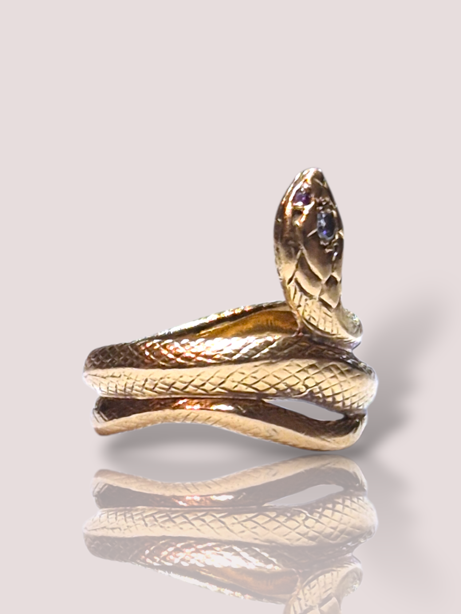De Antieke 18k geel gouden slangenring is een verfijnd sieraad met een schitterende diamant en robijn. Deze ring valt onder de categorie sieraden en is specifiek een ring. Draag deze tijdloze klassieker solo voor een elegante uitstraling of combineer met andere gouden sieraden voor een luxe effect. Ideaal voor speciale gelegenheden.
