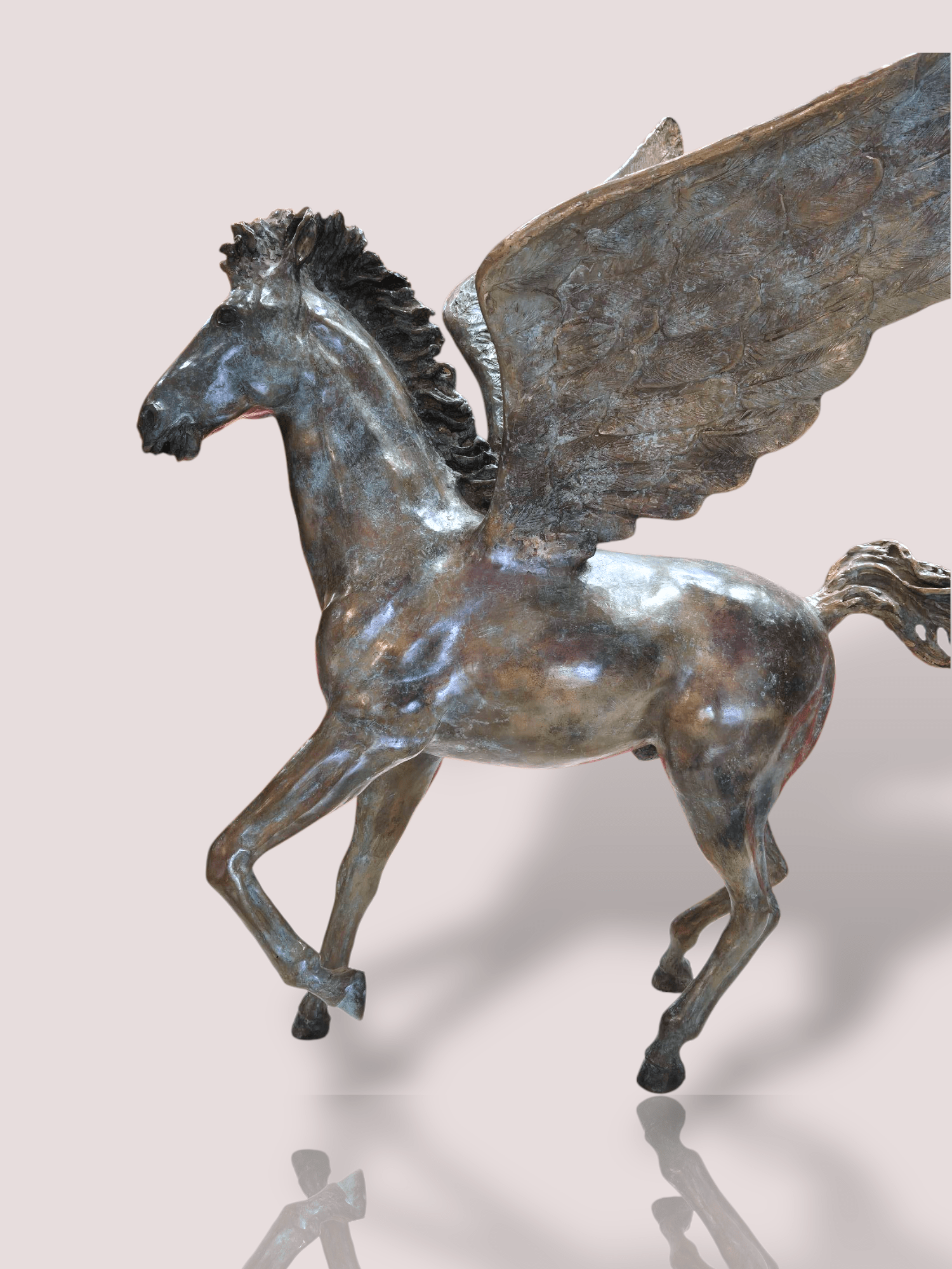 Het Bronzen beeld Pegasus van Jean Marianne Bremers, is een zeer gewilde sculpture waarvan 12 beelden zijn uitgebracht. Dit beeld betreft nummer 3 uit de serie. Dit werk is een indrukwekkend accessoire dat elegantie en kracht toevoegt aan elke ruimte.