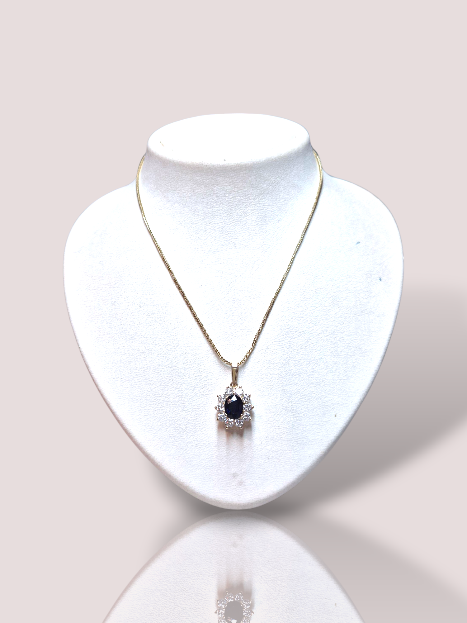 De hanger bevat een 1,45ct saffier en circa 1ct aan diamanten.