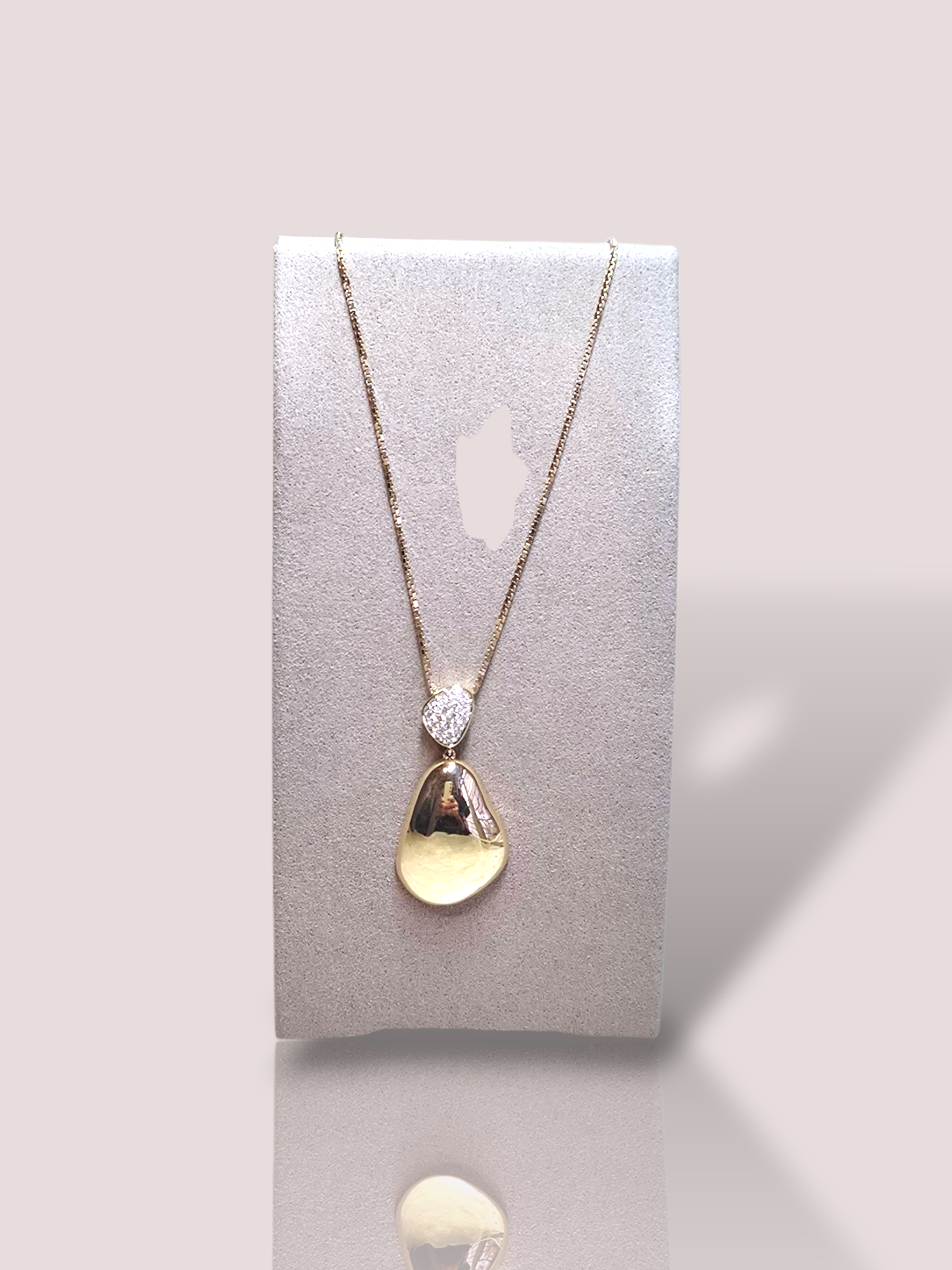 De House of Bruens 14k geelgouden organisch design diamanthanger, is een prachtige, nieuwe hanger gemaakt van 14 karaat goud. Het bevat een briljantgeslepen diamant van 0,20 karaat, met SI1 zuiverheid en G-kleur. Deze fantasie-vormige hanger is perfect om dagelijks als een elegant statement te dragen. Gewicht: 6 gram, breedte: 16 mm.