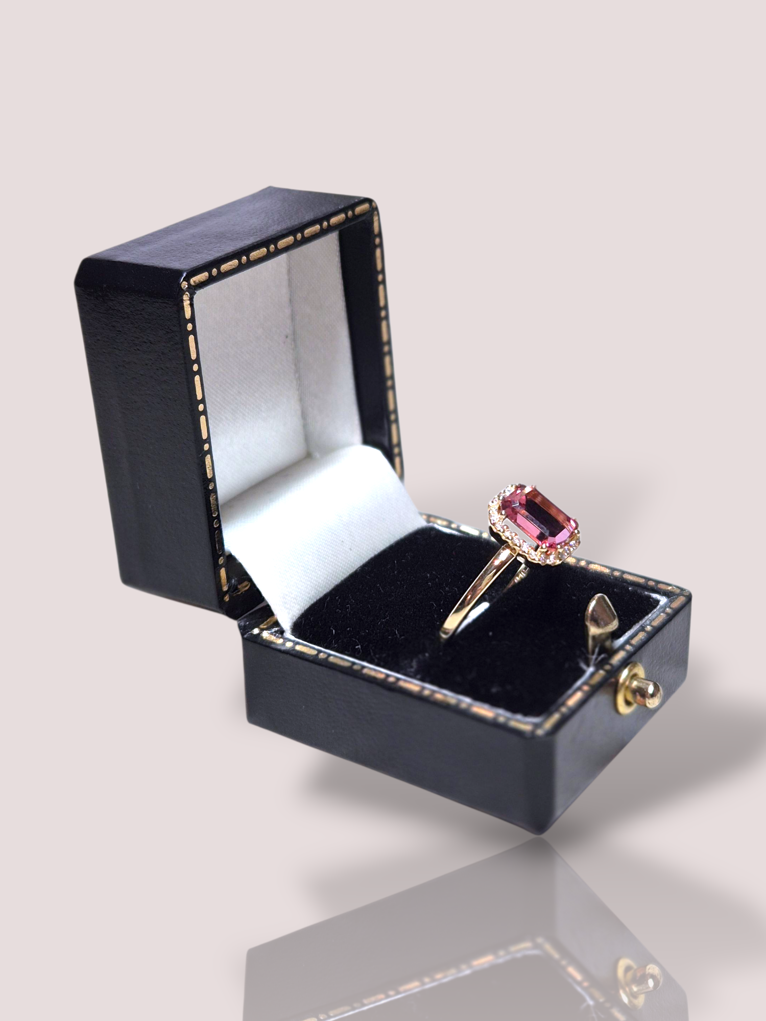 De House of Bruens 14k geelgouden ring is een verfijnd juweel met een briljantgeslepen toermalijn en SI1-diamanten. De ringmaat is 58 en de toermalijn heeft een gewicht van 0.10 karaat. Dit nieuwe sieraad in roze kleur is perfect te combineren met een elegante avondjurk of chique outfit.