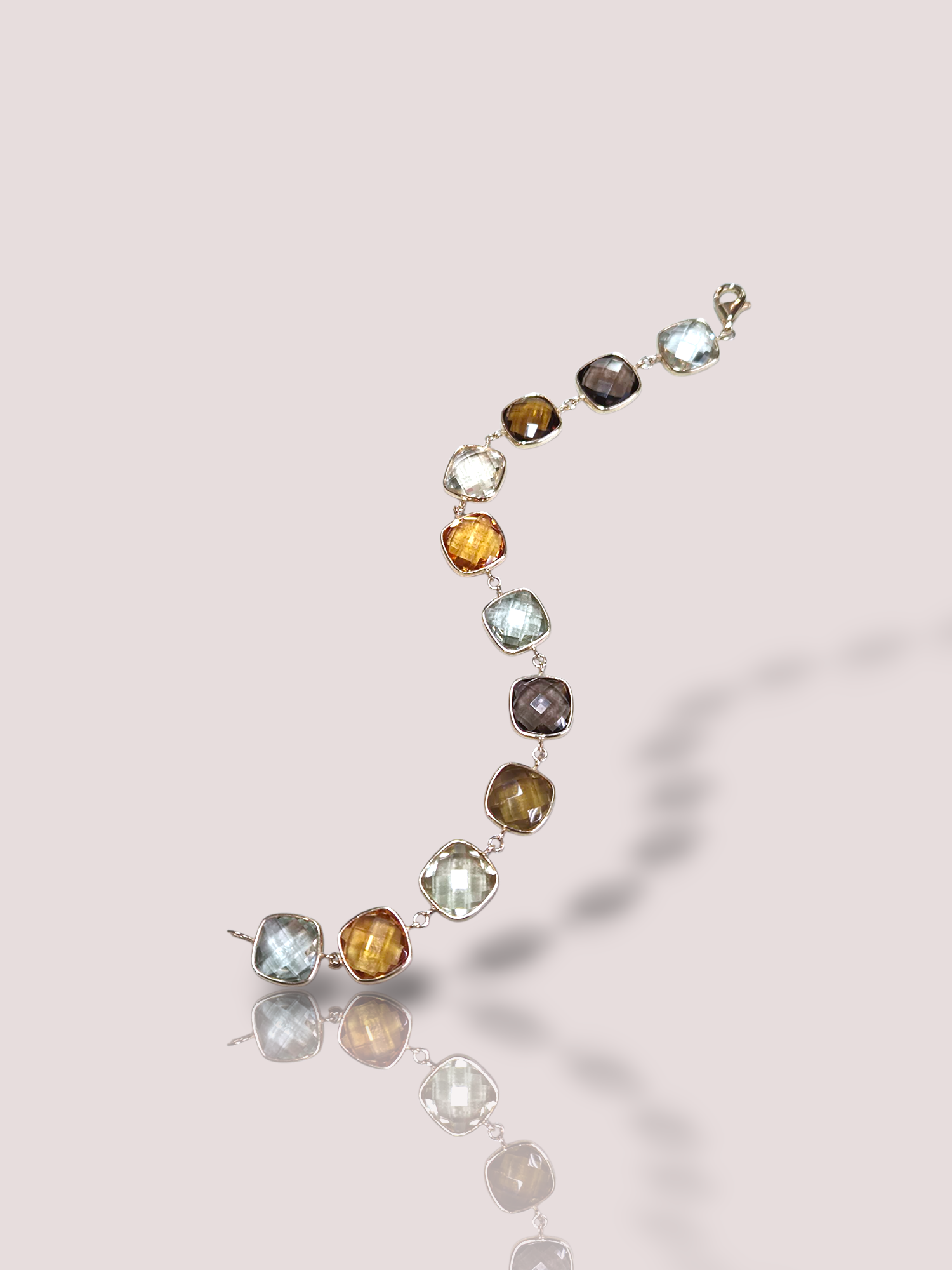 De armband is 19 cm lang en bevat 11 prachtig geslepen citrien en kwarts edelstenen.De armand weegt 12 gram.
