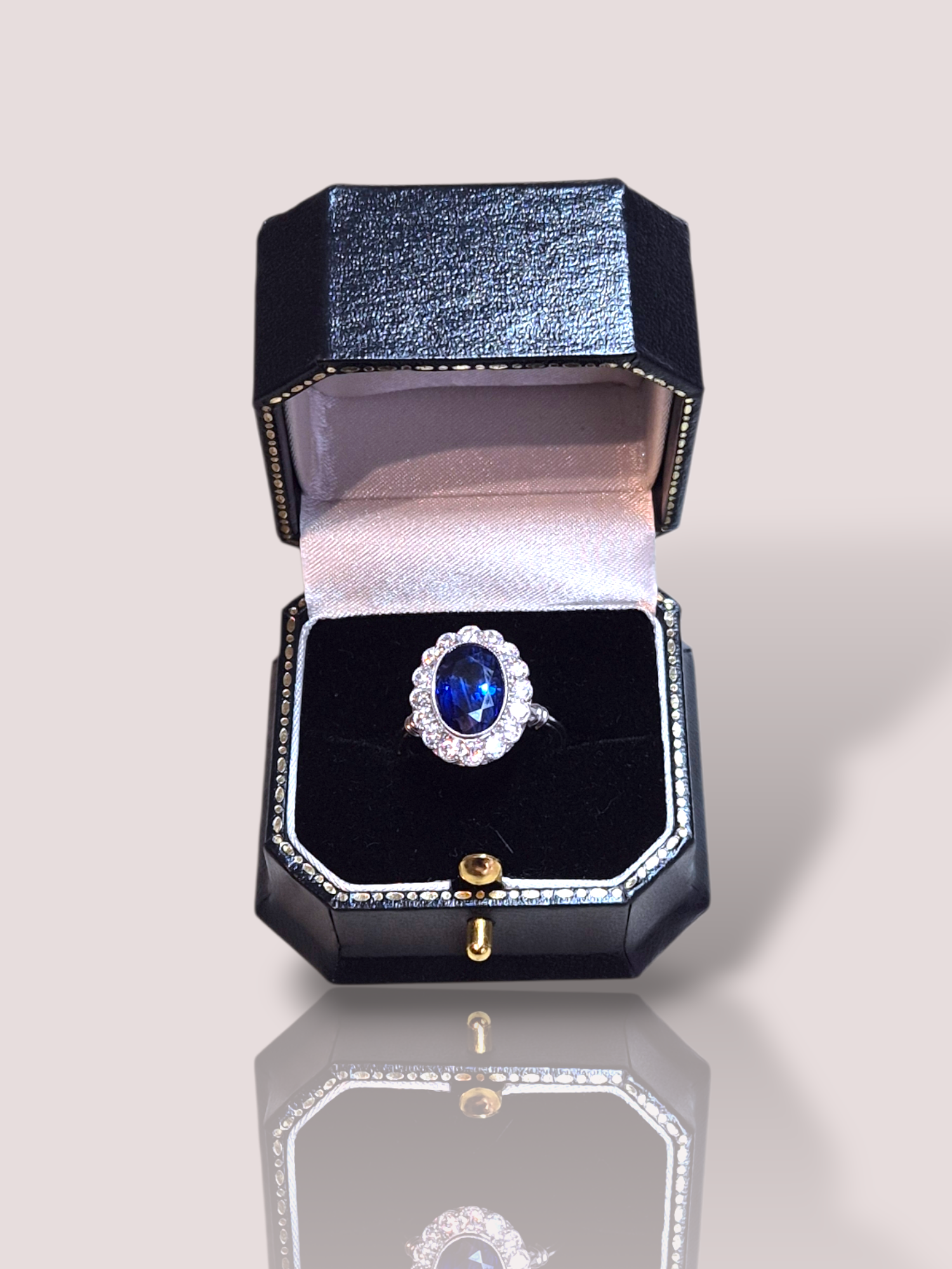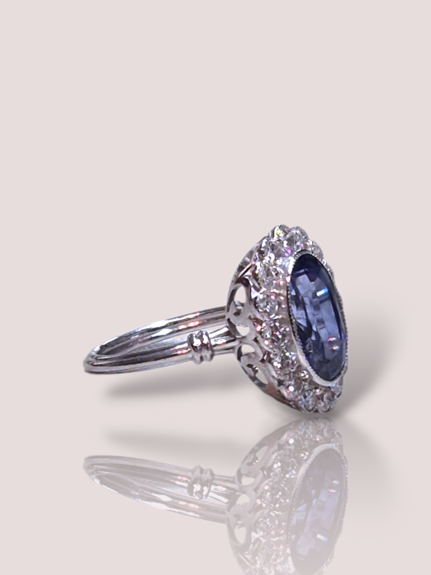 Deze House of Bruens 18k witgouden 'Diana' ring schittert met 16 prachtige witte diamanten en een prachtige Ceylon saffier van maar liefst 6,16ct. Deze verfijnde ring straalt luxe uit en is perfect voor speciale gelegenheden. Draag hem solo voor een elegante uitstraling of combineer met andere sieraden voor een gedurfde look.