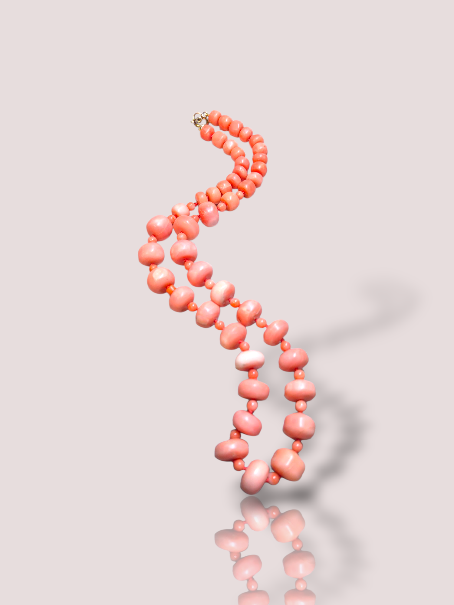 Dit prachtige Vintage angelskin collier met gouden slotje, is een tijdloze en elegante toevoeging aan je sieradencollectie. Als een verfijnde ketting, valt het mooi op de hals en kan perfect gedragen worden bij zowel formele als casual gelegenheden voor een klassieke en stijlvolle uitstraling.