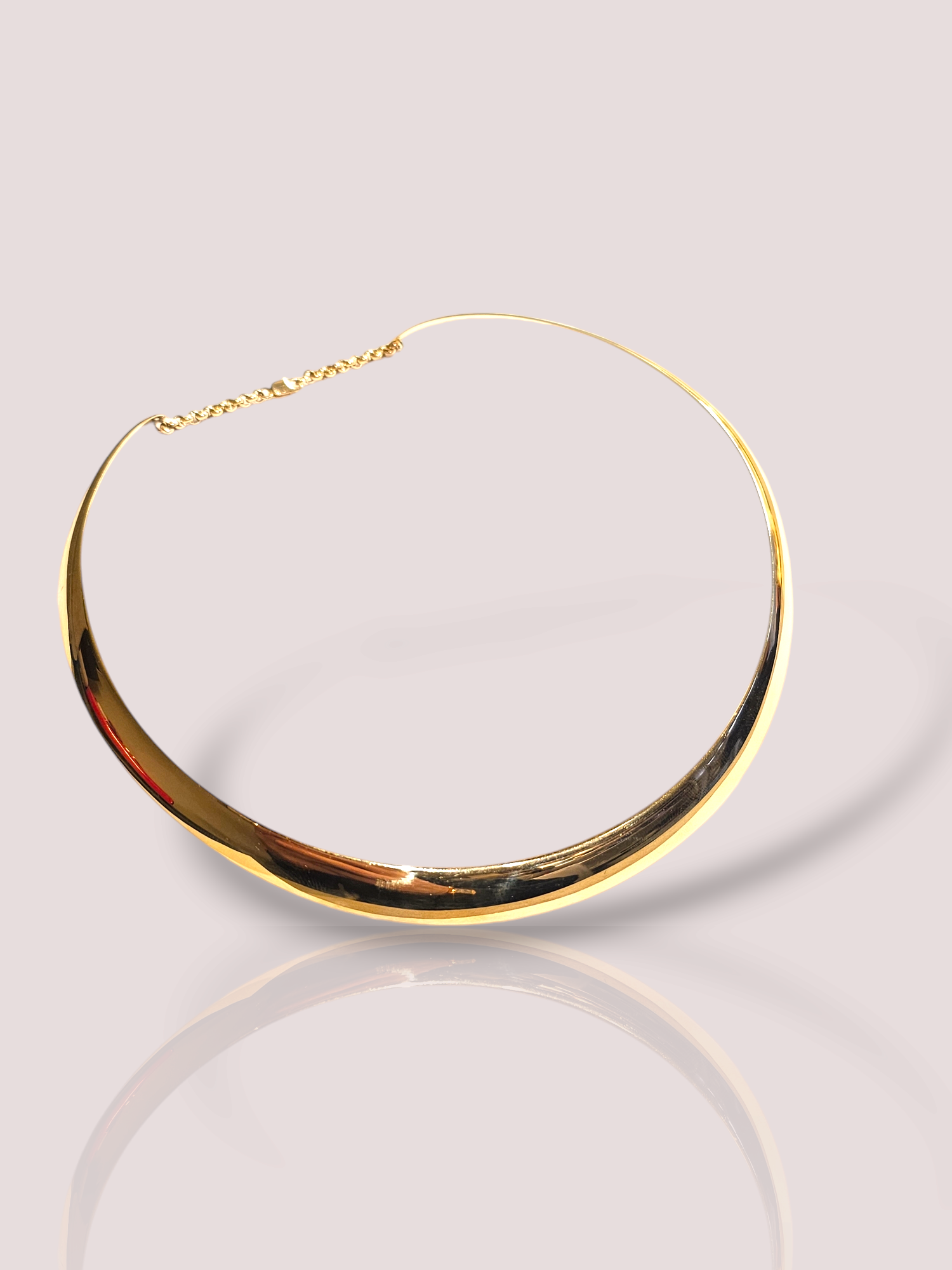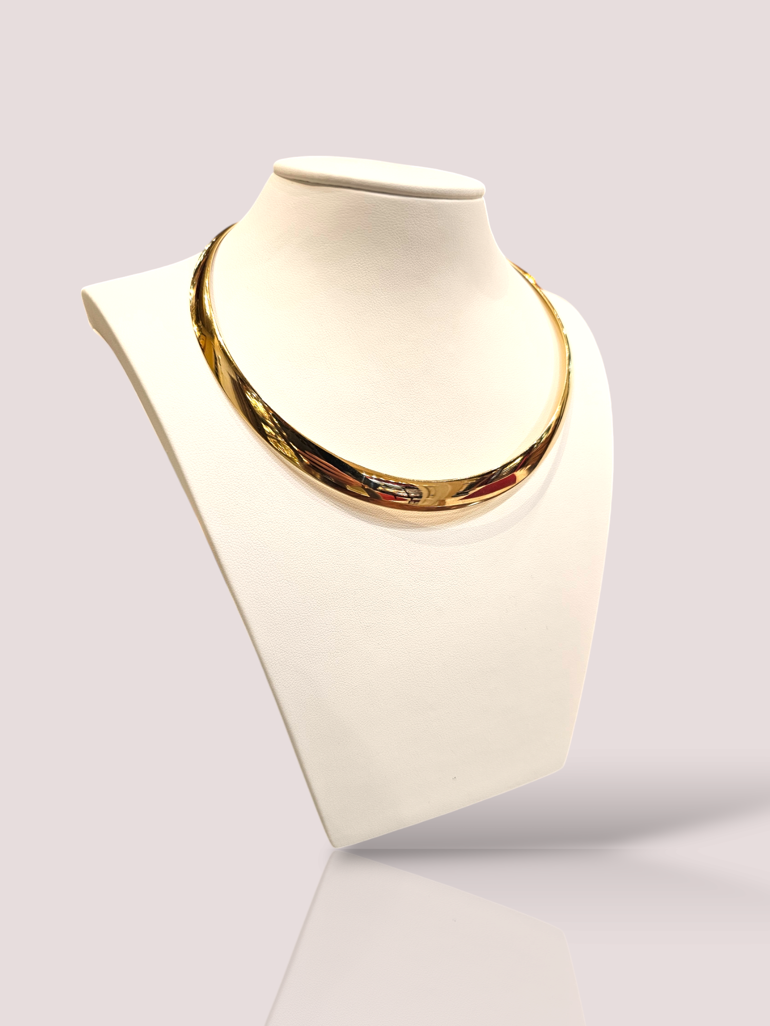 Dit vintage 14k geel gouden choker collier is een prachtig statement piece dat perfect is voor het toevoegen van een vleugje luxe aan elke outfit. De choker heeft een opvallend ontwerp en een glanzende afwerking die de aandacht zal trekken. Draag deze choker op zichzelf voor een elegante look, of combineer het met andere kettingen voor een trendy gelaagde stijl. Maak je outfit compleet met deze schitterende choker ketting!