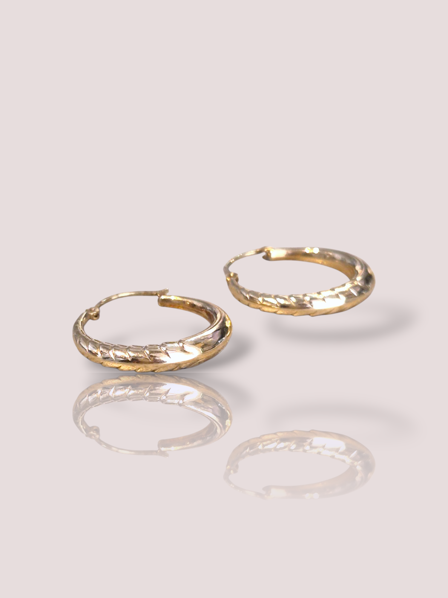 De Vintage 14k geel gouden creolen zijn stijlvolle sieraden voor elke gelegenheid. Deze creolen stralen elegantie uit en zijn gemakkelijk te combineren met zowel casual als formele outfits. Perfect om het gezicht te omlijsten en een verfijnde touch aan uw look te geven. Draag ze met opgestoken haar voor maximale impact.