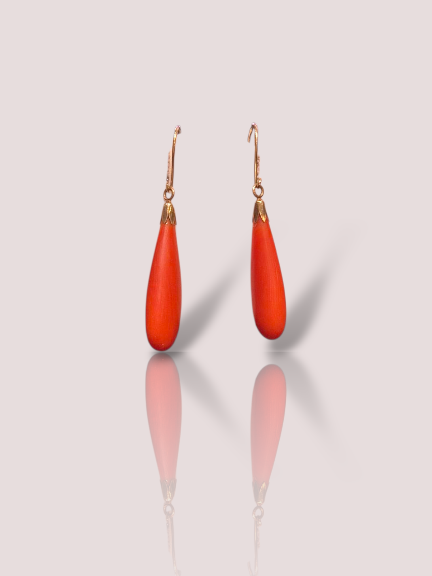 Deze prachtige vintage oorbellen zijn gemaakt van 14k geel goud en zijn versierd met bloedkoraal. De oorbellen hebben een klassiek en tijdloos ontwerp dat perfect is voor elke gelegenheid. Draag ze met een chique jurk voor een elegante look of combineer ze met een casual outfit voor een vleugje glamour. Deze oorbellen zijn een waardevolle toevoeging aan elke sieradencollectie.