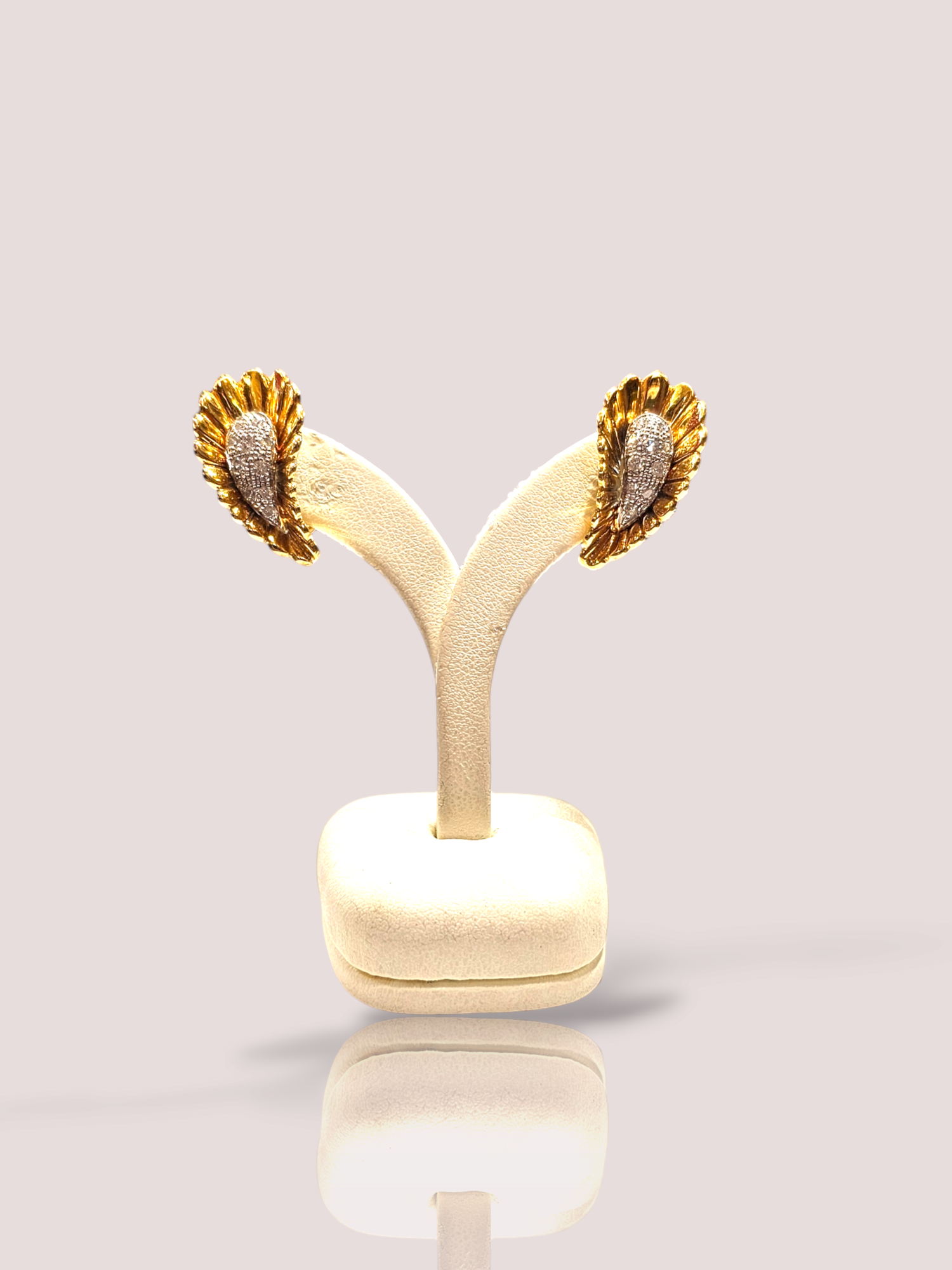 Deze vintage 14k geel gouden oorbellen zijn voorzien van prachtige diamanten en stralen luxe uit. De oorbellen zijn perfect voor een chique gelegenheid of een avondje uit. Draag ze met een elegant jurkje voor een glamoureuze look. De subtiele maar opvallende uitstraling van de oorbellen zal zeker complimenten oogsten. Voeg dit tijdloze stuk toe aan je sieradencollectie voor een vleugje glamour.