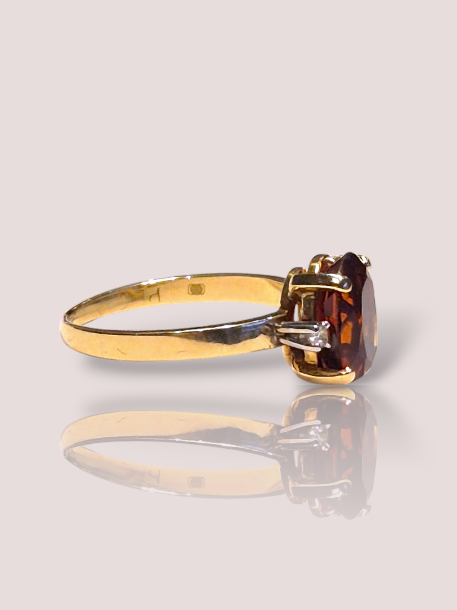 De citrien is 10 bij 8 mm en wordt vergezeld door 2 prachtige diamantjes.