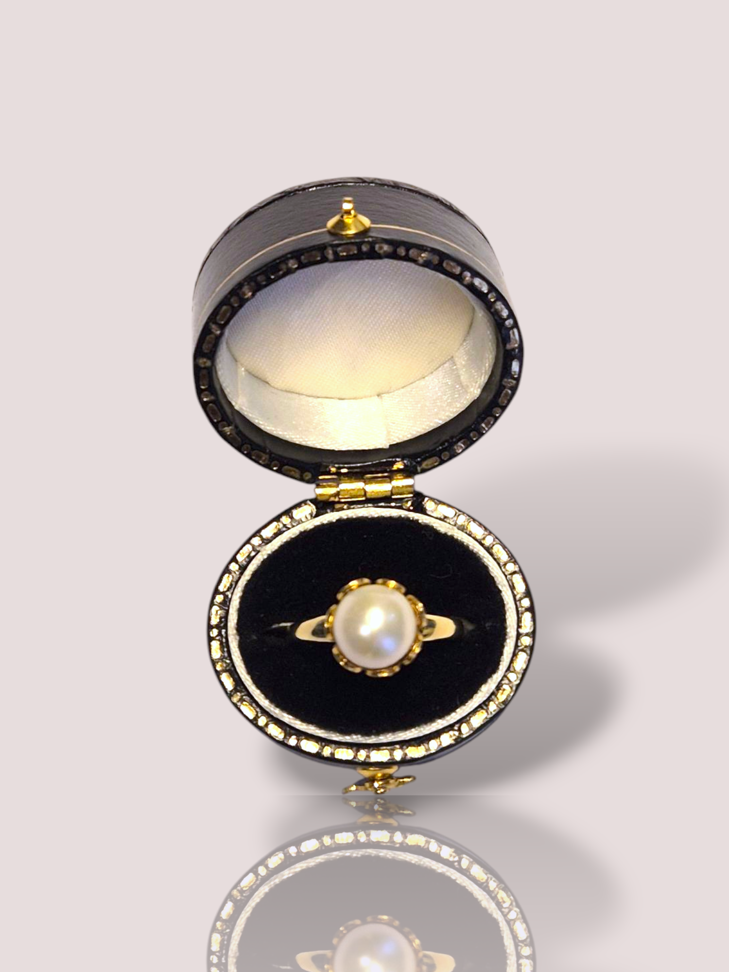 Deze prachtige vintage 14k geel gouden ring met parel is een tijdloze toevoeging aan je sieradencollectie. De gouden band is subtiel en elegant, terwijl de glanzende parel een vleugje glamour toevoegt. Draag deze ring als statement stuk bij een chique avond outfit of als alledaagse accessoire voor een vleugje luxe. Perfect om te combineren met andere gouden sieraden voor een geraffineerde look.