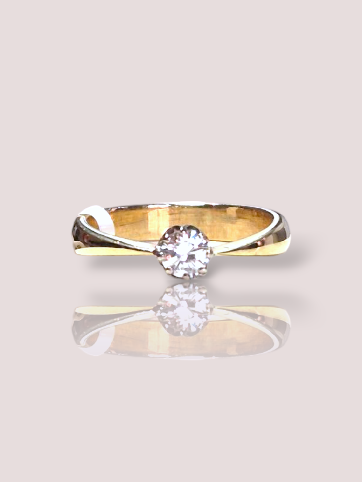 Deze prachtige vintage 14k geelgouden ring heeft een solitaire diamant die schittert in het licht. De ring straalt tijdloze elegantie uit en is perfect voor speciale gelegenheden. Draag hem alleen voor een subtiele touch of combineer hem met andere gouden sieraden voor een luxe uitstraling. Een must-have voor liefhebbers van minimalistische en klassieke stijlen.