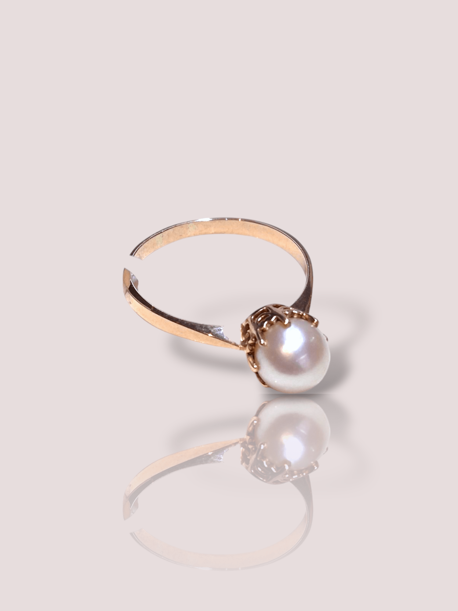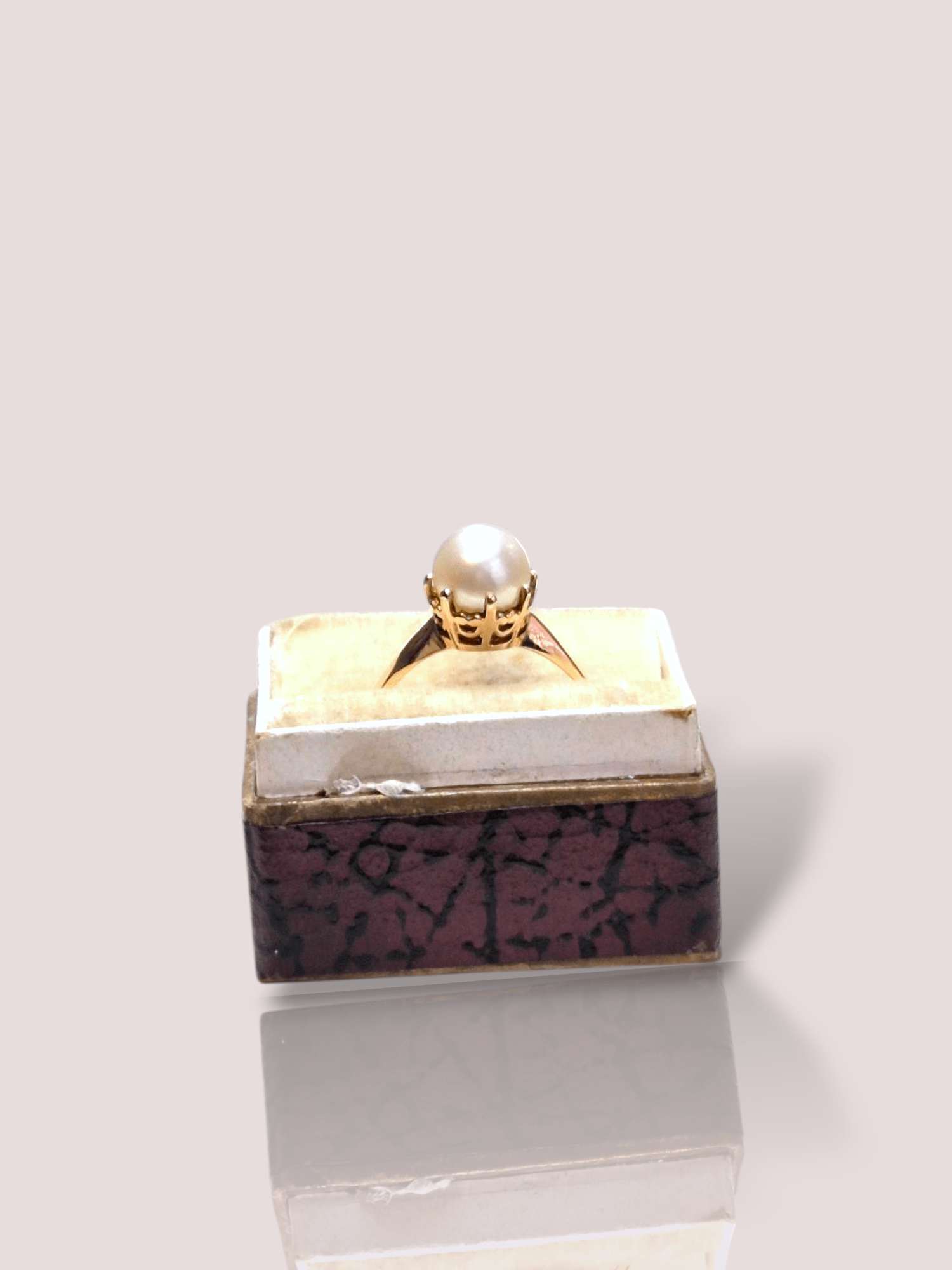 Deze prachtige vintage 14k geel gouden ring is bezet met een zoutwater parel, waardoor het een tijdloze en elegante uitstraling heeft. De ring is perfect voor speciale gelegenheden en voegt een vleugje glamour toe aan elke outfit. Draag deze ring alleen of combineer het met andere gouden sieraden voor een luxueuze look.