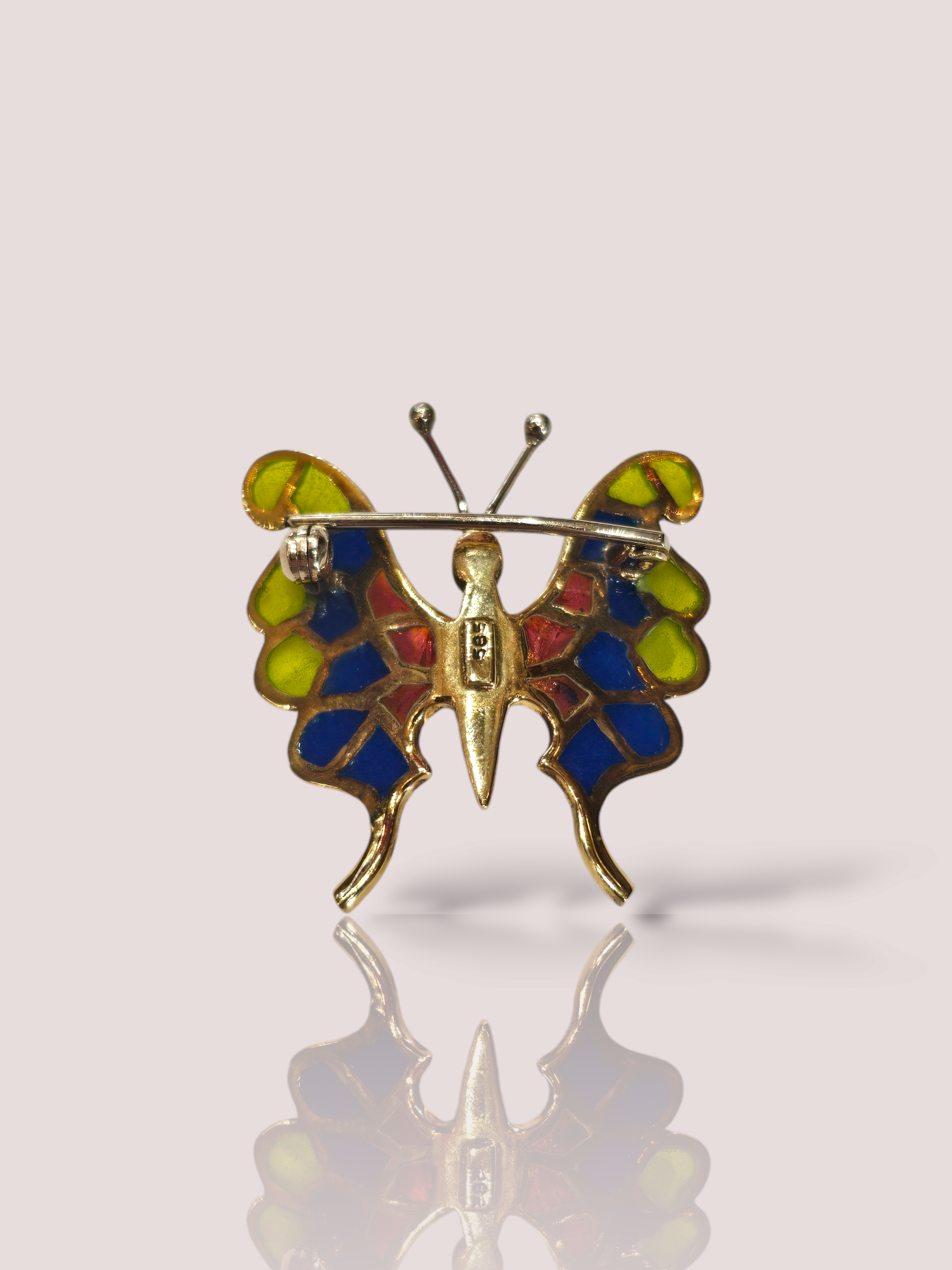 Deze vintage 14k geel gouden vlinder broche met emaille is een prachtig en uniek sieraad. De broche heeft gedetailleerd emaillewerk en straalt een klassieke elegantie uit. Draag deze broche op een blouse, jas of tas voor een speelse touch aan je outfit. Een waardevolle toevoeging aan je sieradencollectie!