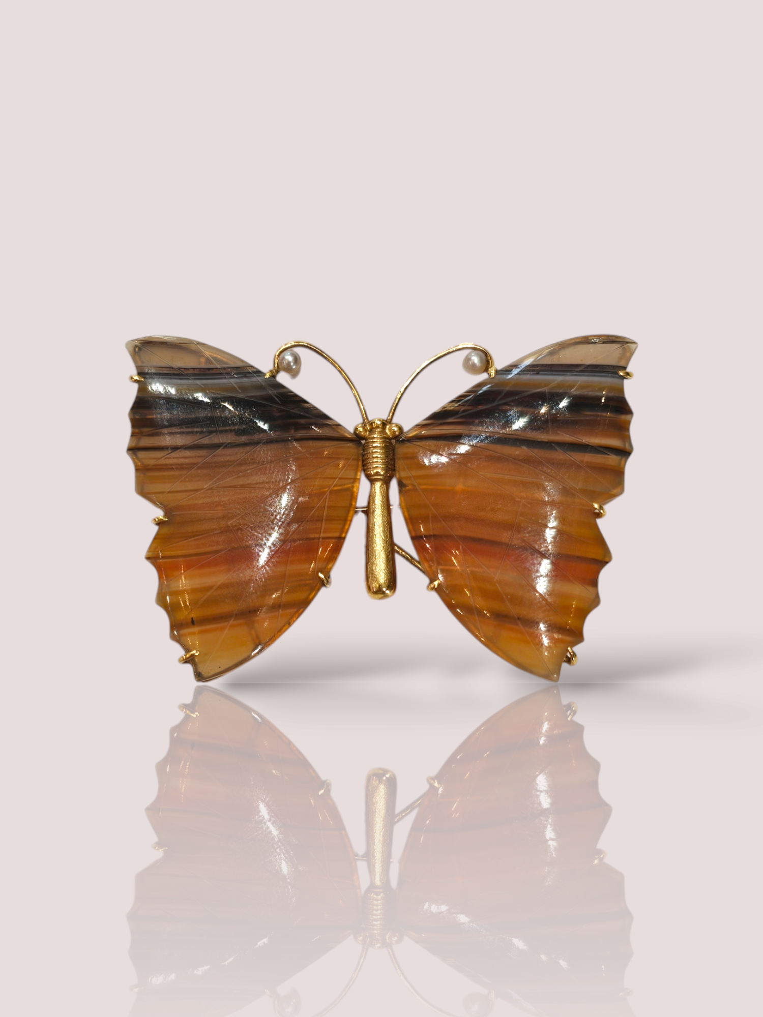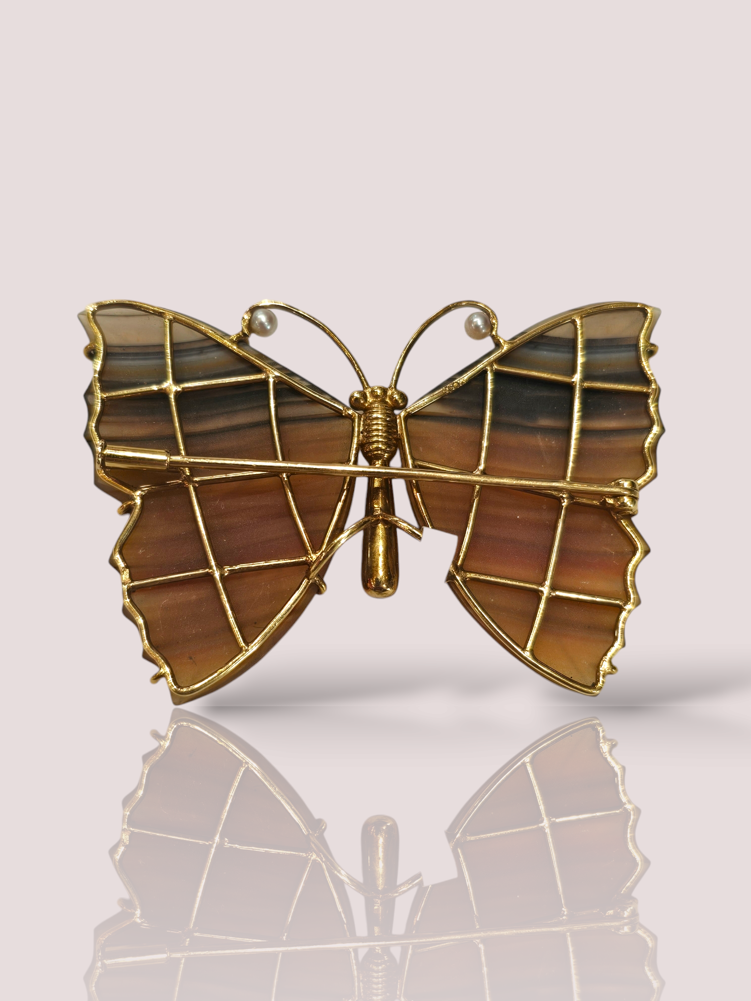 Deze prachtige vintage 14k geel gouden vlinder broche is verfraaid met schitterende pareltjes. De broche voegt een vleugje elegantie toe aan elke outfit en kan op verschillende manieren gedragen worden. Bevestig de broche op een blazer, jurk of sjaal voor een chique uitstraling. Een veelzijdig en tijdloos stuk dat elke outfit complimenteert.