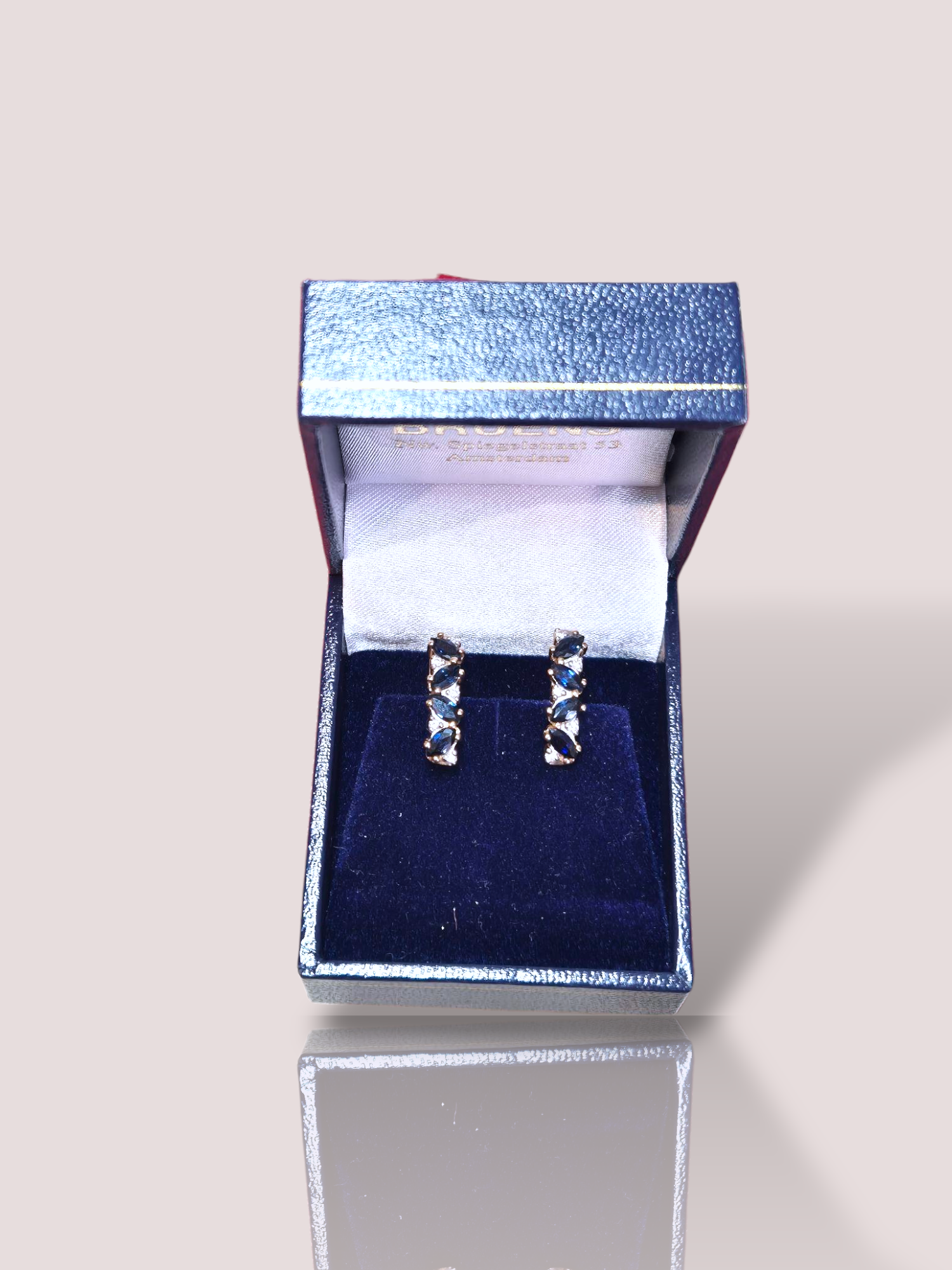 Deze vintage 14k roségouden oorstekers zijn voorzien van markies geslepen saffieren en briljant geslepen diamanten. Ze combineren elegantie met een tijdloze uitstraling. Perfect voor zowel formele als informele gelegenheden, geven ze elke outfit een verfijnde touch. Draag ze bij opgestoken haar om hun volledige schoonheid te tonen. Een must-have voor elke sieradenliefhebber.