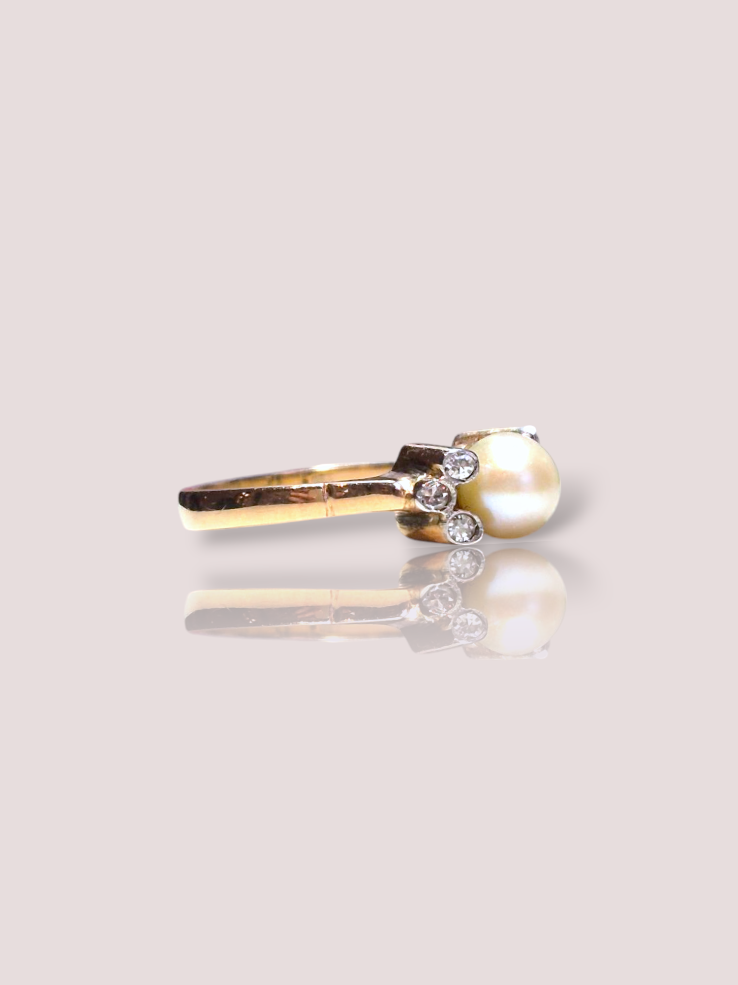 Deze prachtige vintage 14k roségouden ring straalt elegantie uit met zijn verfijnde parel en fonkelende diamanten. Ideaal voor elke gelegenheid, vleugje tijdloze allure toe te voegen.