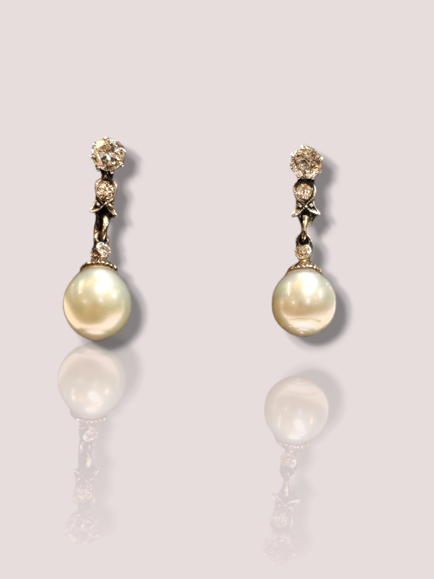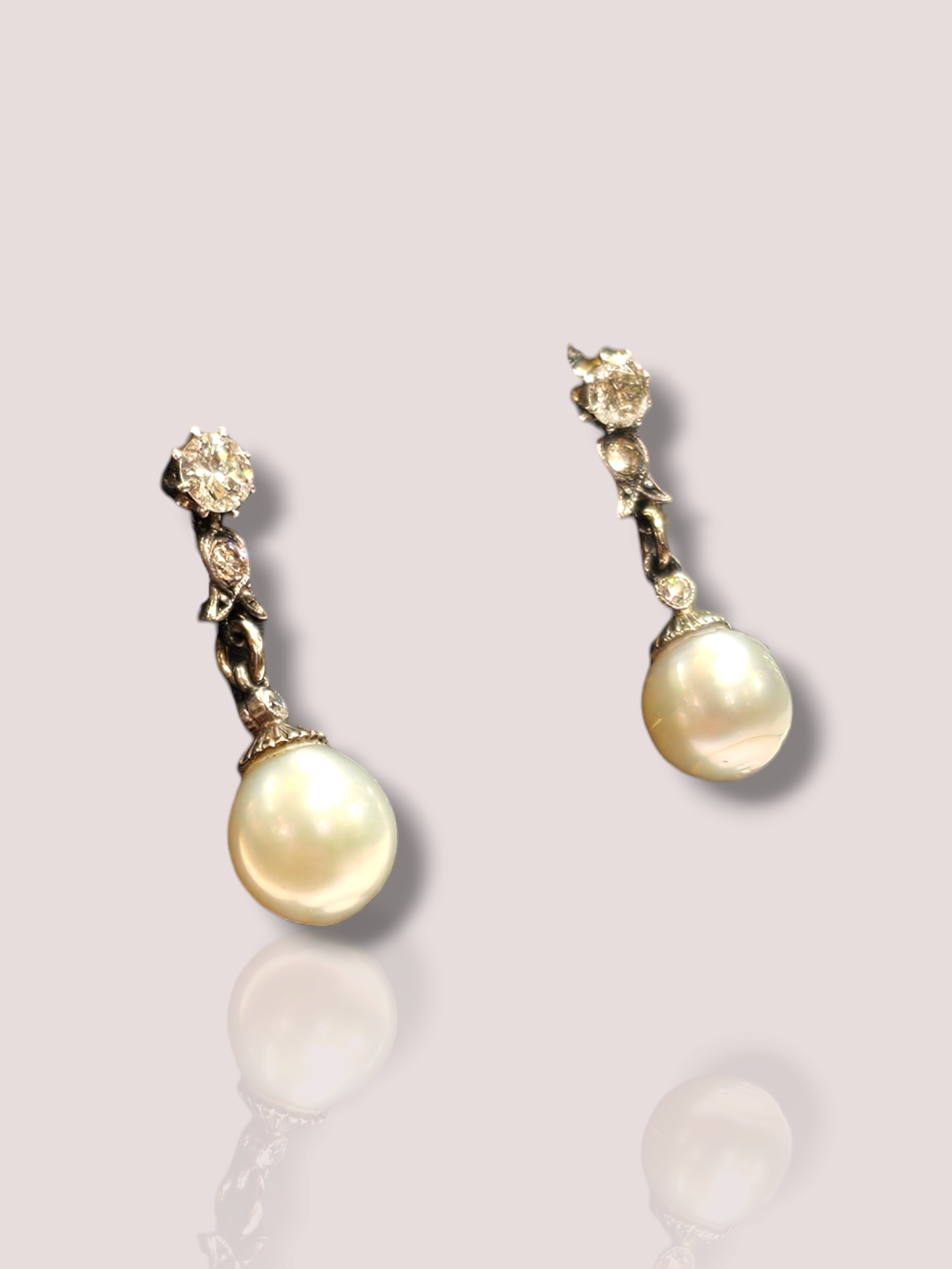 Deze prachtige vintage 14k witgouden oorhangers zijn versierd met glanzende parels en sprankelende diamanten. De perfecte keuze voor een elegante en stijlvolle look. Draag ze met je favoriete avondjurk voor een extra vleugje glamour of combineer ze met een casual outfit voor een verfijnde touch. Een tijdloze toevoeging aan je sieradencollectie.