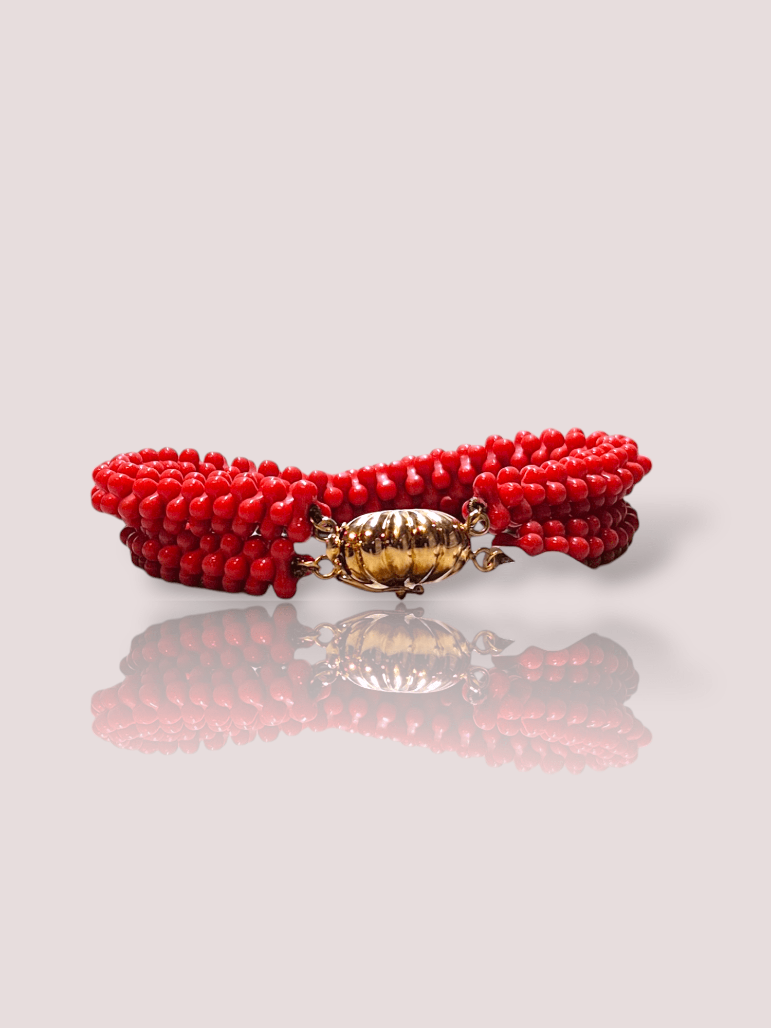 Deze prachtige vintage armband is gemaakt van 18 karaats geel goud en is versierd met levendig bloedkoraal. De armband is tijdloos en elegant, perfect voor elke gelegenheid. Draag hem alleen als statement stuk of combineer met andere armbanden voor een trendy look. De armband is een uniek en waardevol stuk dat elke outfit zal verfraaien.