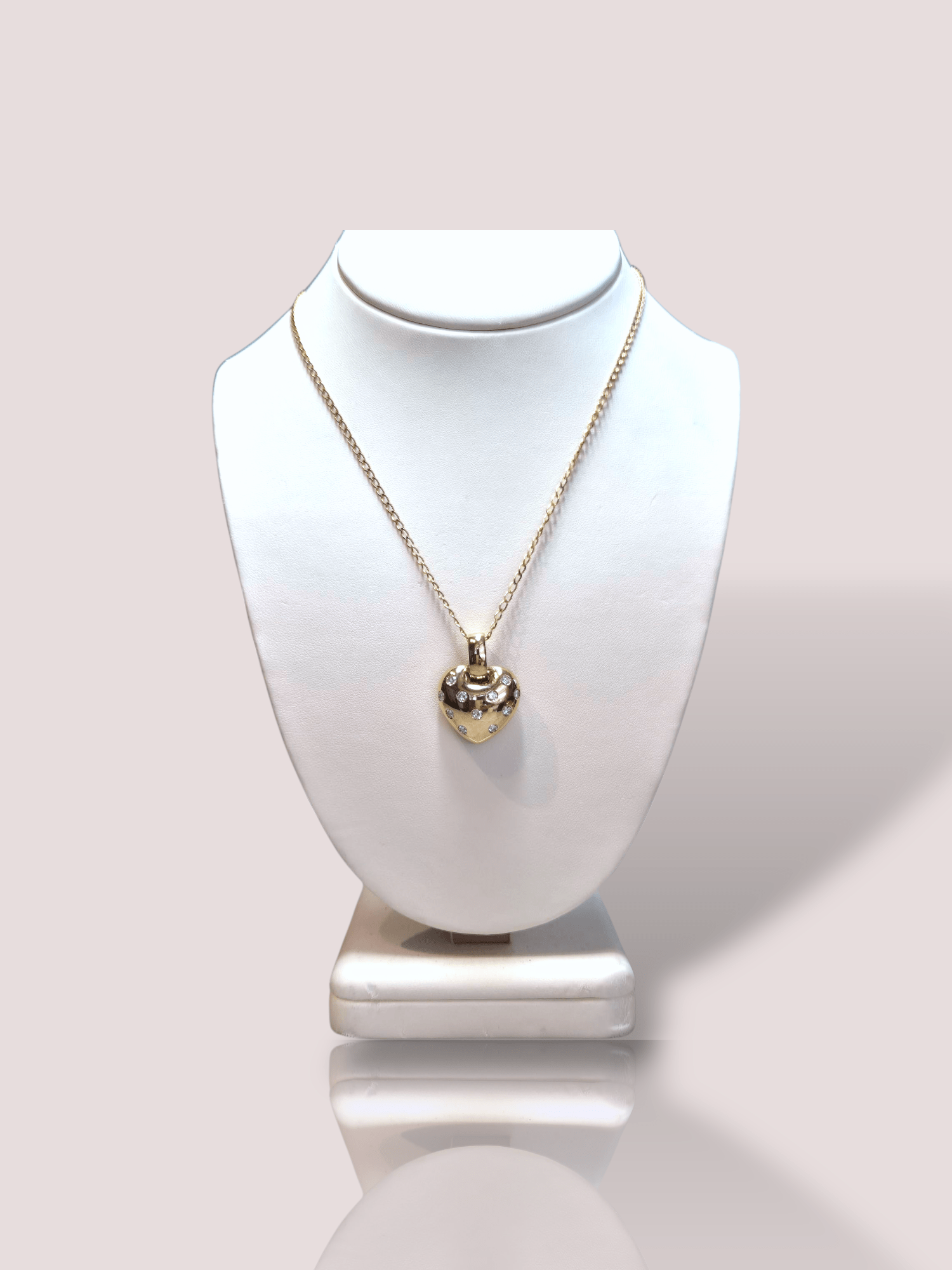 Deze Vintage 18k geel gouden hart hanger is voorzien van 11 schitterende diamanten van elk 0,07 karaat. Deze luxueuze hanger is een echte eyecatcher. Draag het hangertje aan een fijne ketting voor een elegante en tijdloze uitstraling, perfect voor zowel dagelijks gebruik als speciale gelegenheden.