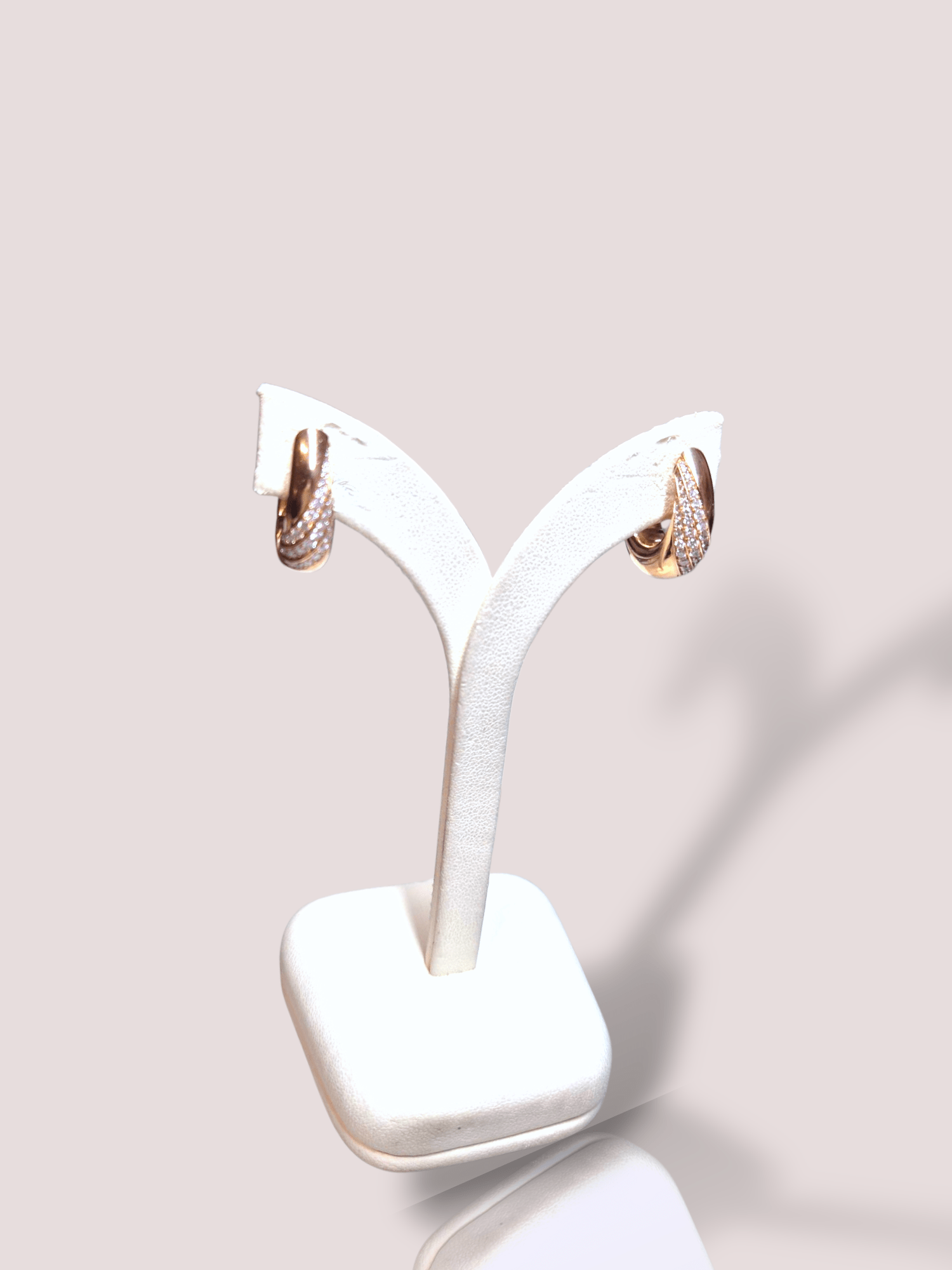 De Vintage 18k roségouden diamanten oorbellen van het Duitse juwelenhuis NOOR stralen elegantie uit met hun prachtige roségouden glans en fonkelende diamanten. Als sieraadstatements zijn ze perfect voor zowel formele gelegenheden als het toevoegen van een vleugje luxe aan alledaagse outfits. Draag ze met opgestoken haar om hun schittering te accentueren en de verfijning van je look te verhogen.