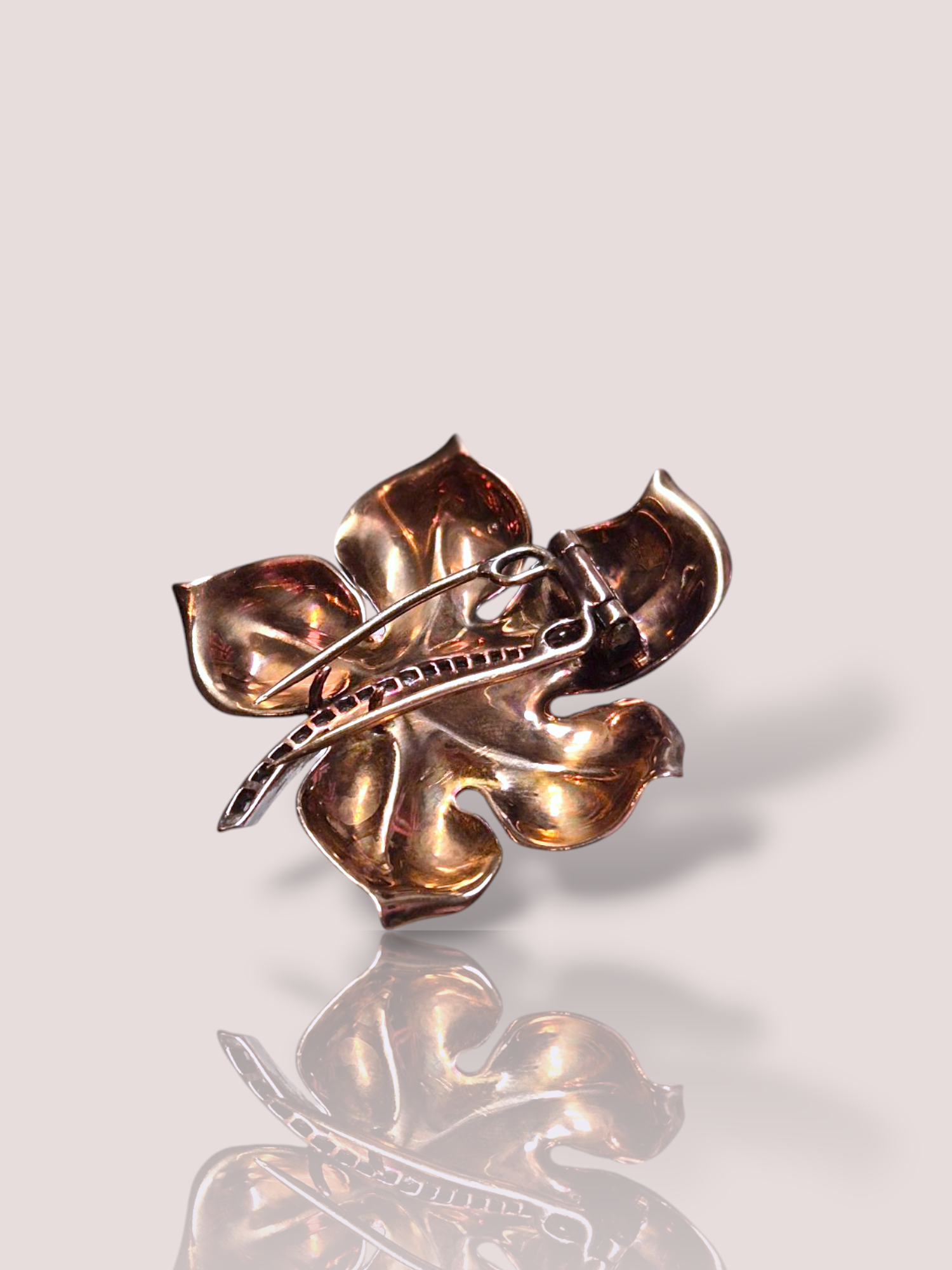 Deze vintage 18k roségouden broche is versierd met schitterende diamanten, waardoor het een echte eye-catcher is. De broche kan op verschillende manieren gedragen worden, zoals op een chique jurk, blazer of zelfs op een sjaal. Voeg een vleugje glamour toe aan elke outfit met deze prachtige broche!