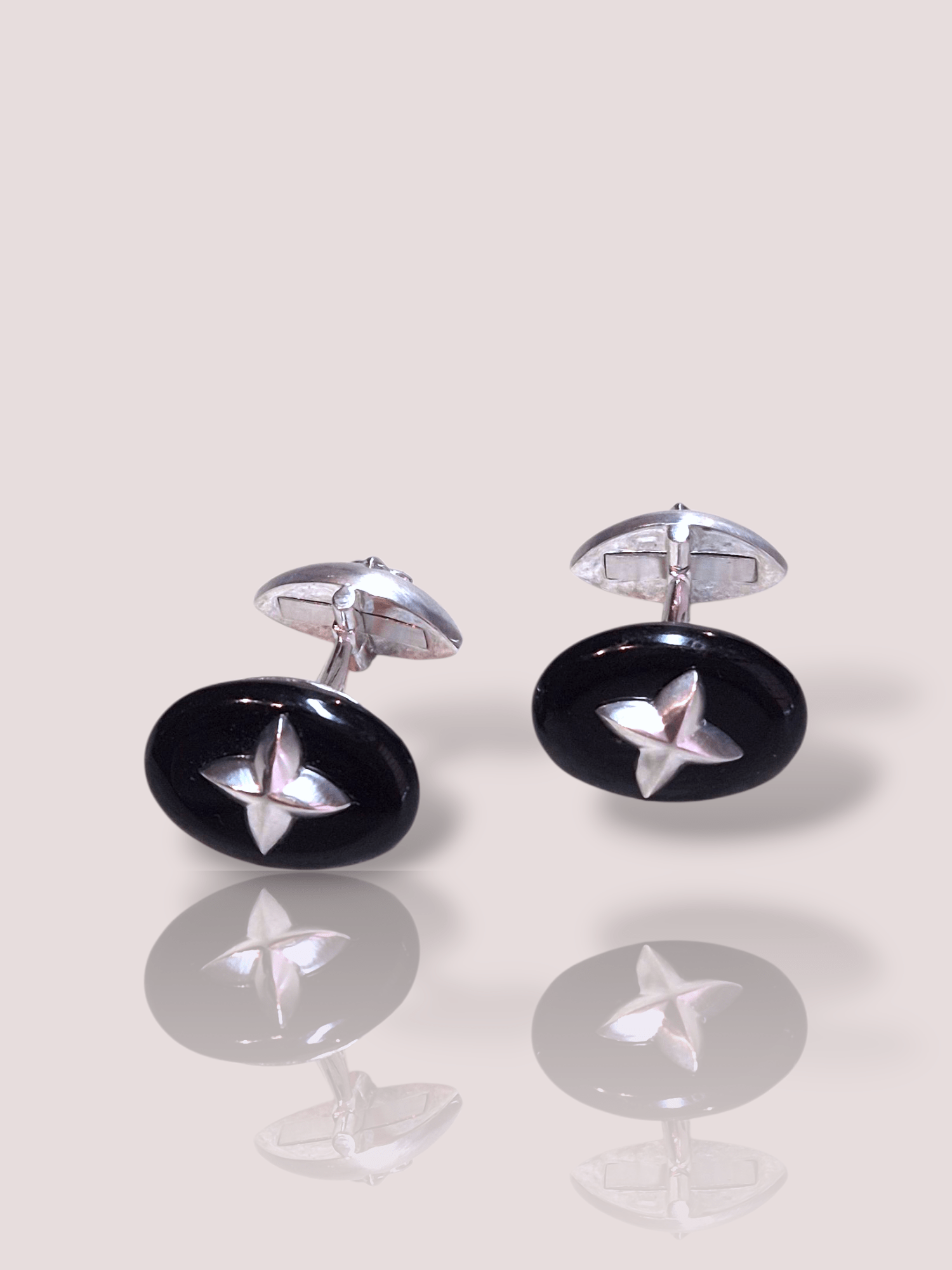 Deze vintage Steinlin 18k witgouden manchetknopen met onyx zijn stijlvolle accessoires. Gemaakt van hoogwaardig 18k witgoud en verrijkt met Onyx en mat bewerkt witgoud. Perfect voor formele gelegenheden, voeg een vleugje luxe toe aan je outfit. Draag ze met een mooi wit of zwart overhemd voor de ultieme elegante uitstraling.