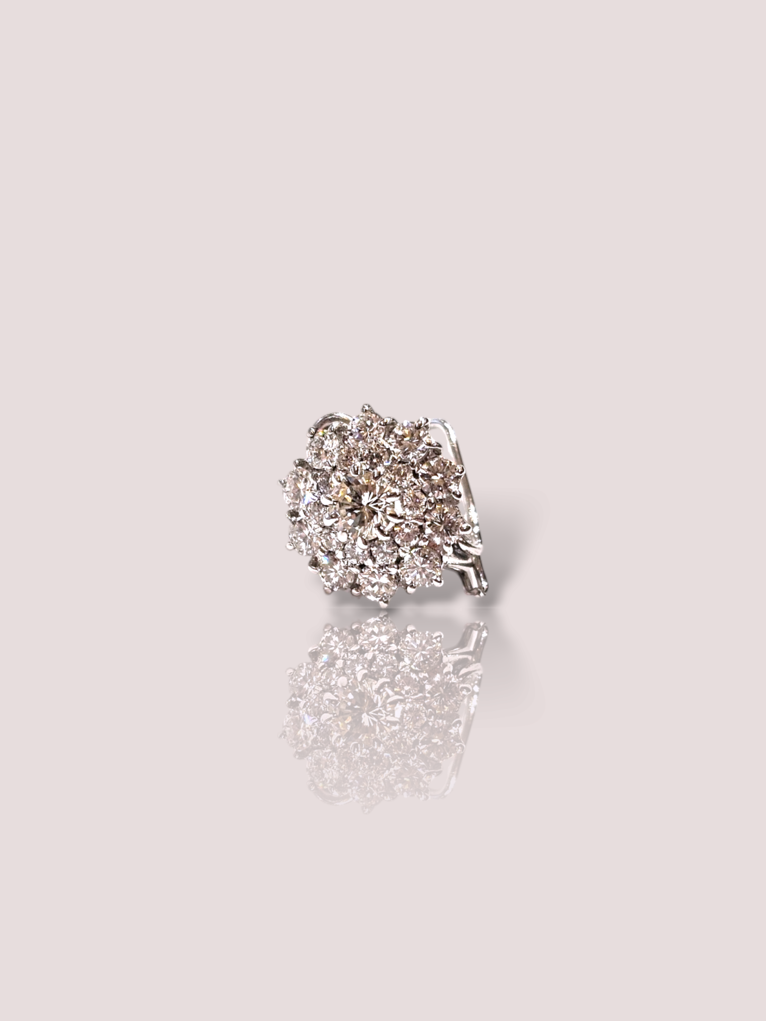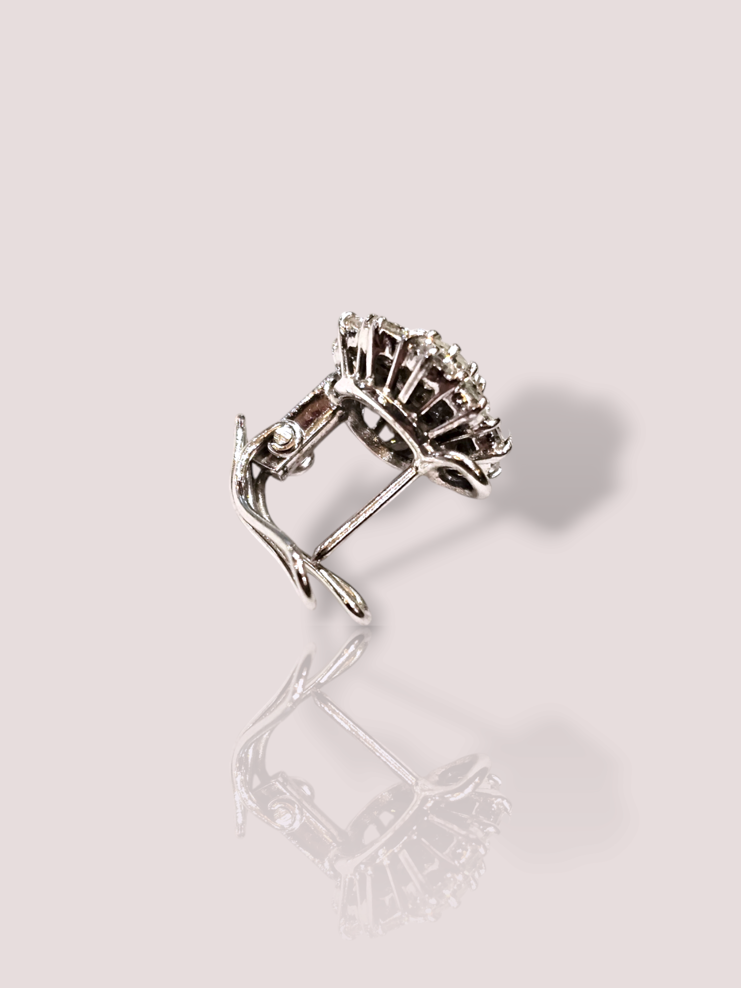Deze prachtige vintage 18k witgouden oorstekers zijn ingelegd met schitterende diamanten, wat zorgt voor een tijdloos en elegant design. De oorstekers kunnen perfect worden gedragen bij zowel formele als informele gelegenheden, waardoor ze een veelzijdige toevoeging zijn aan je sieradencollectie. Draag ze solo voor een subtiele uitstraling of combineer ze met andere gouden accessoires voor een luxueuze look. De diameter van de oorstekers is 1,9 cm en elke oorsteker bevat maar liefst 21 schitterende diamanten.