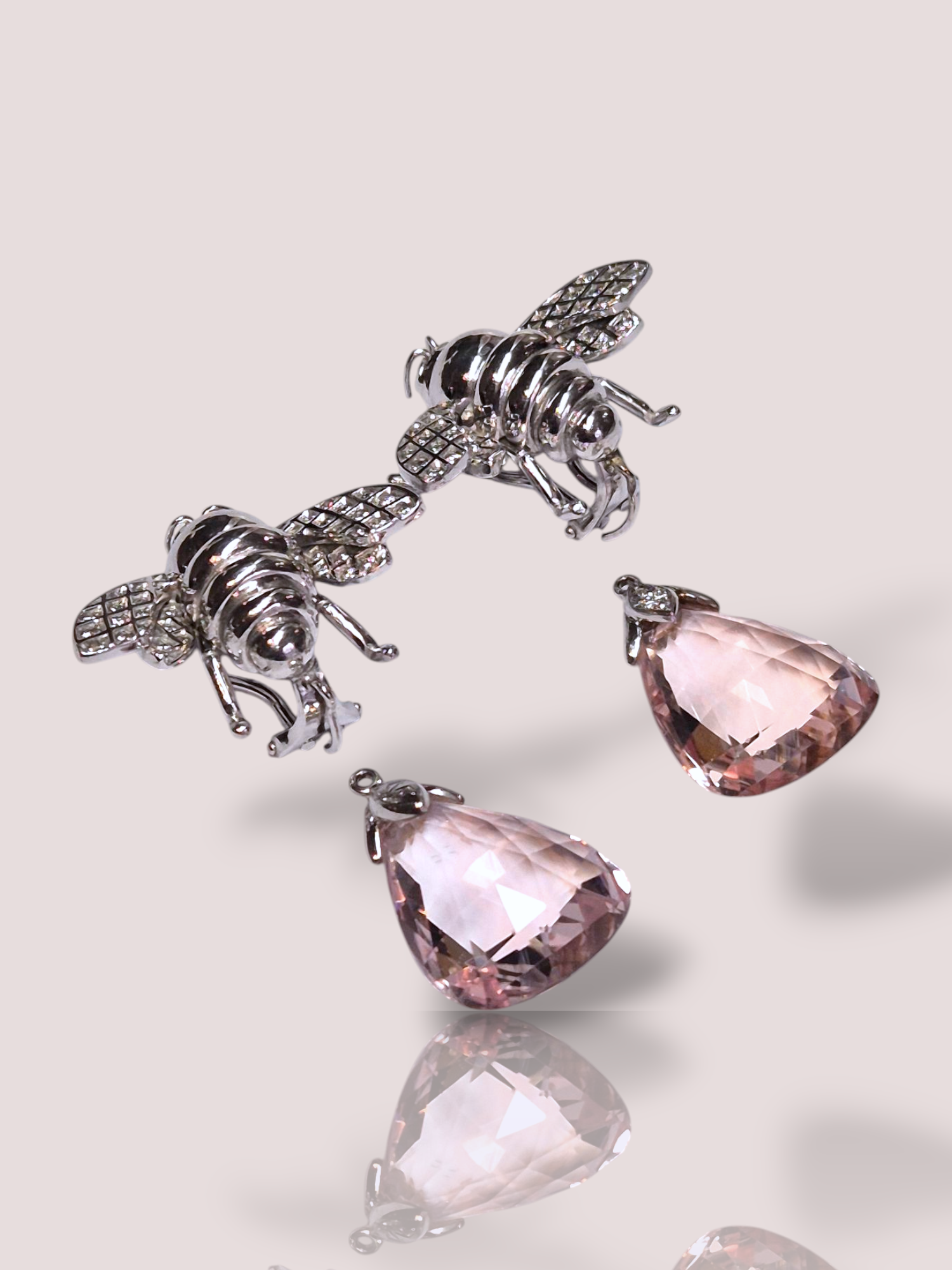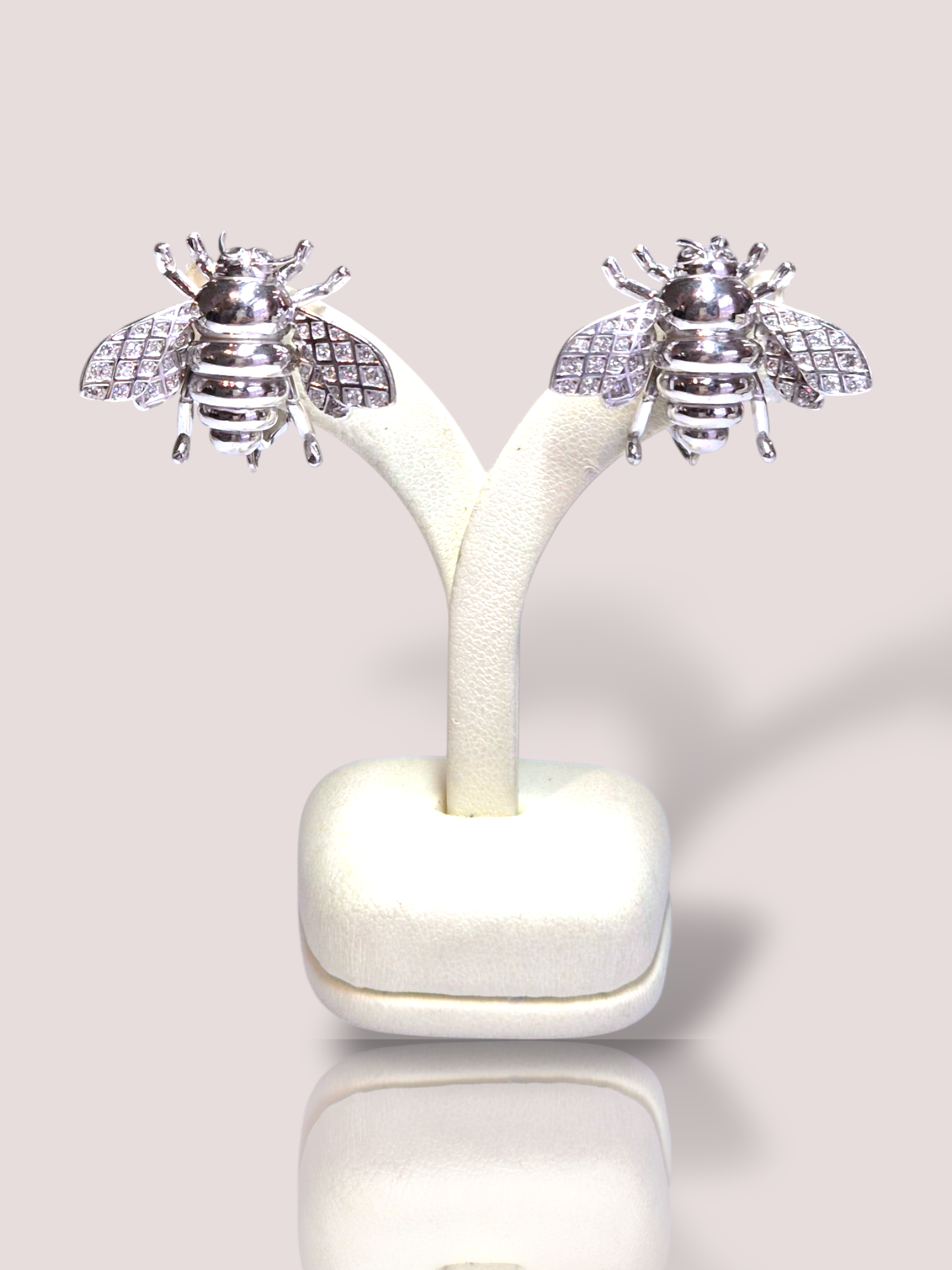 De oorbellen stellen bijen voor, bezet met diamanten op de vleugels. Een prachtig ontwerp van het Zwitserse juwelenhuis Steinlin. De perfecte manier om je outfit een luxe uitstraling te geven. Deze oorclips zijn een tijdloze toevoeging aan je sieradencollectie.