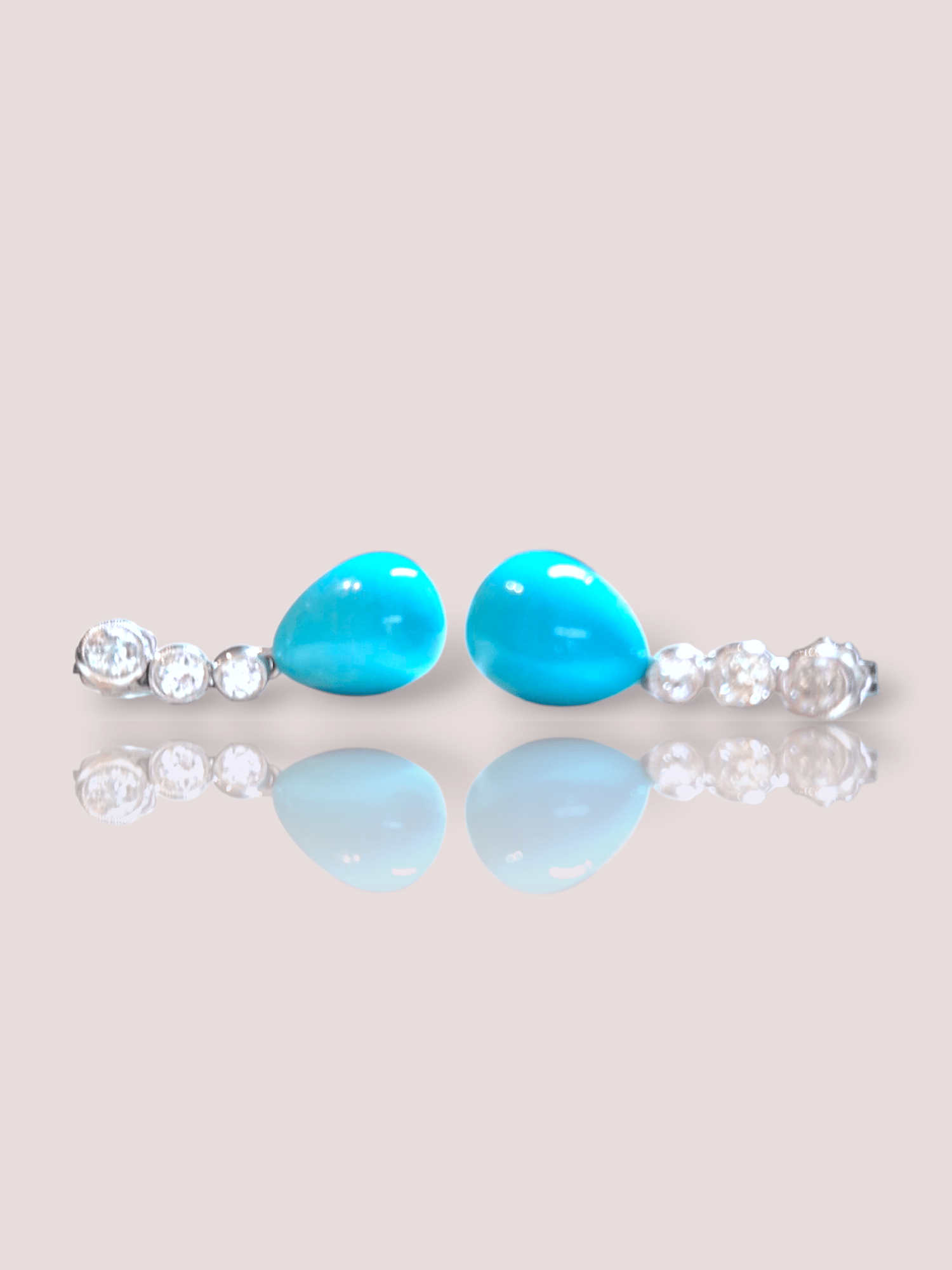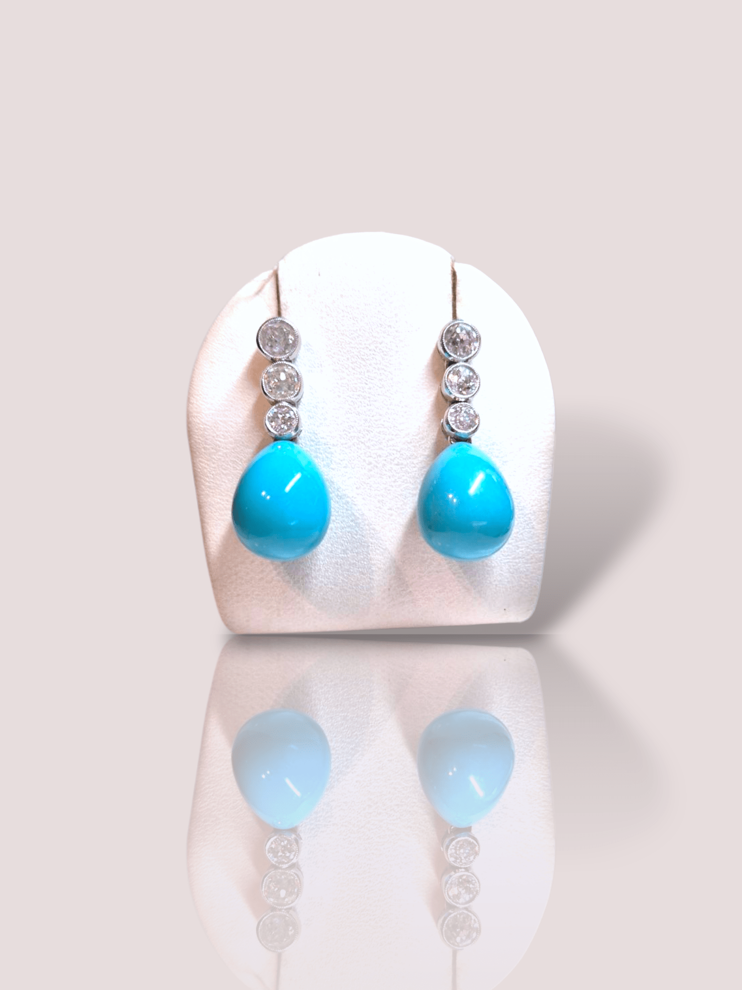 Prachtige elegante vintage 18k witgouden diamanten oorbellen met turkoois. Dit is een combinatie van sprankelende diamanten met levendige turquoise stenen, wat een tijdloze schoonheid geeft. Draag deze oorbellen om een vleugje verfijning toe te voegen aan je avondkleding of als opvallend accessoire bij een eenvoudigere outfit voor een chique, modieuze uitstraling.