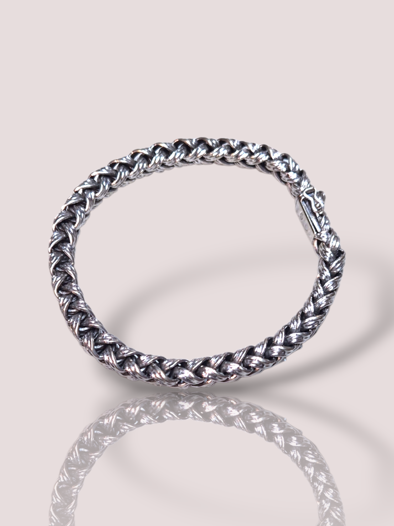 De armband is 19 cm lang en weegt bijna 40 gram, waardoor het prachtig op de pols blijft liggen!