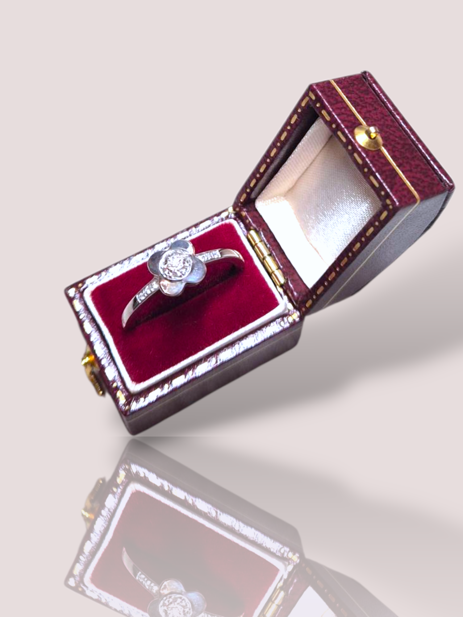 Deze Vintage 18k witgouden Mauboussin Chance of Love ring is een verfijnd sieraad dat luxe en elegantie uitstraalt. Perfect om dagelijks te dragen of bij speciale gelegenheden. Stijlvol te combineren met zowel casual als formele kleding. Draag de ring aan de ringvinger voor een klassieke look of aan de wijsvinger voor een moderne touch.
