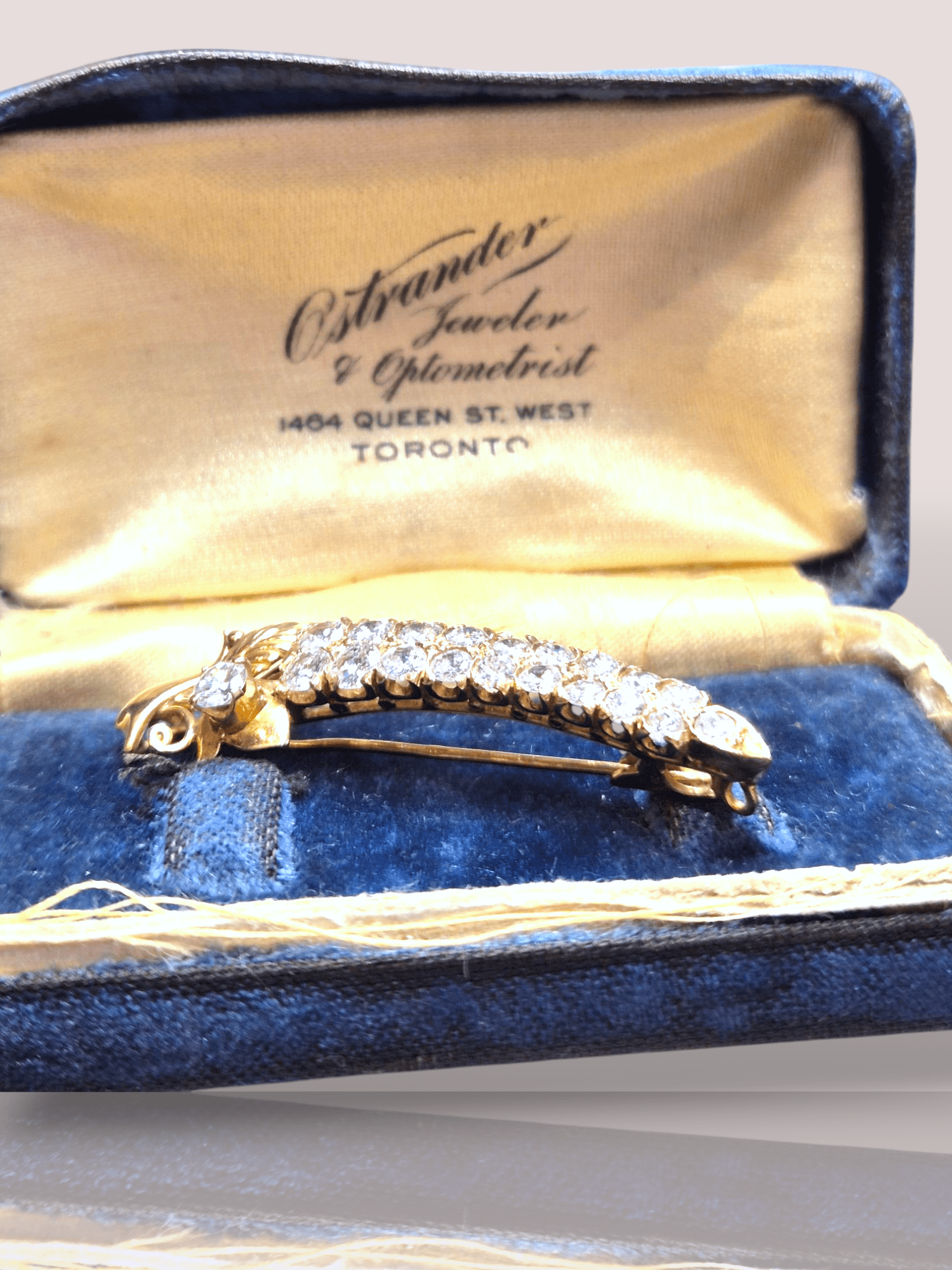 De Vintage 20k geel gouden broche combineert tijdloze elegantie met verfijning. Versierd met schitterende diamanten, is deze broche een echte blikvanger. Draag het op een blazer, jurk of sjaal voor een stijlvolle uitstraling. Onderdeel van de categorie accessoires, specifiek broches en spelden, biedt het een luxe afwerking aan elke outfit.