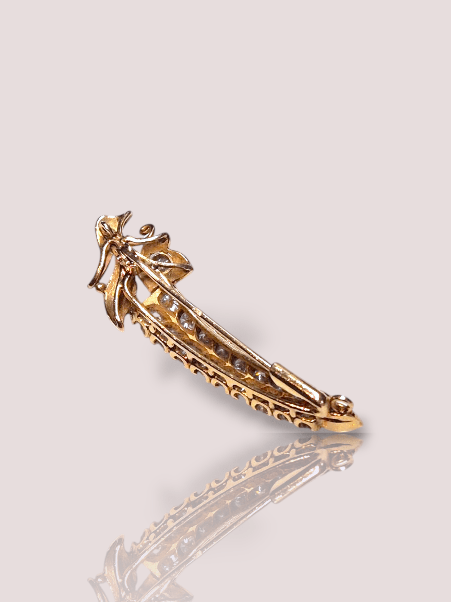 De broche is 4,5 cm lang en bevat 20 prachtige briljant geslepen diamanten van verschillende kwaliteiten SI2 tot P1. De grootste diamant is 0,25ct en in totaal bevat deze broche circa 1,94ct aan diamanten.