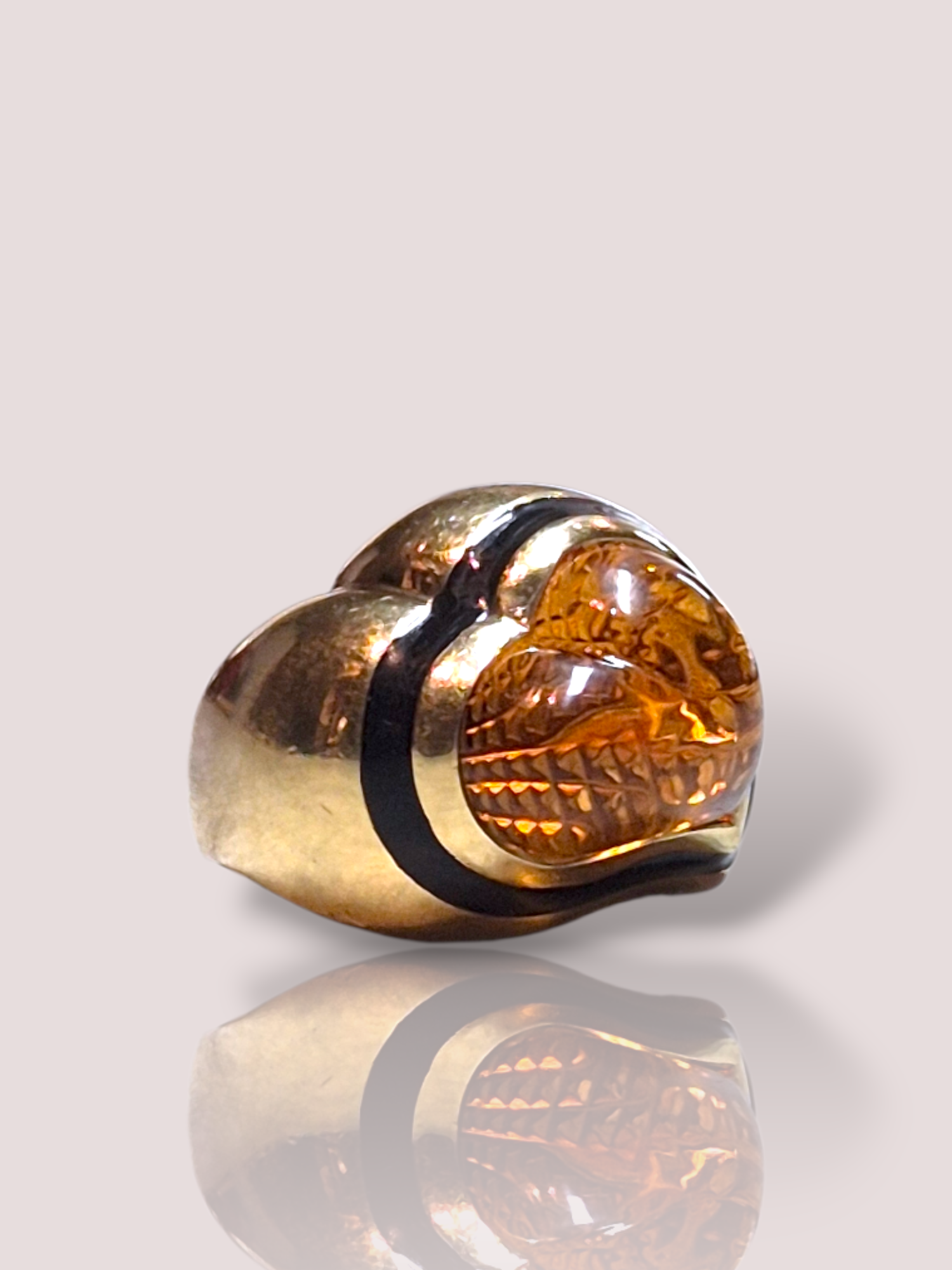 De ring is een waar statement met citrien geslepen met een honingraat motief en de bovenzijde is cabochon geslepen. Ongekende klassieke schoonheid!